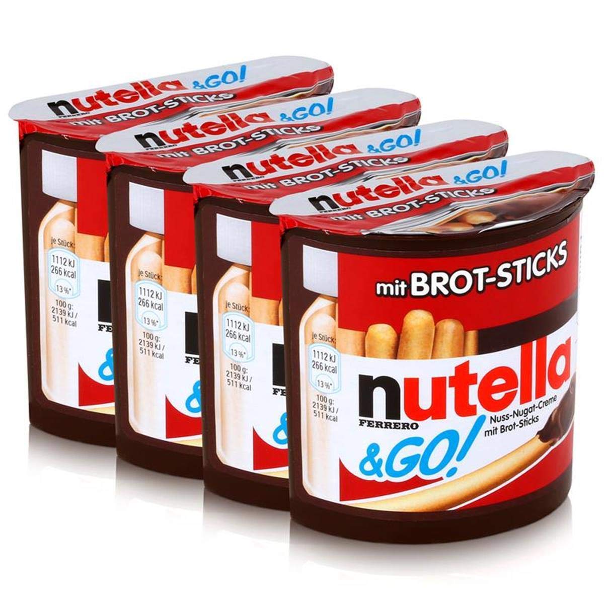 For everyone who wants to enjoy Nutella on the go, it's Nutella Go! Thanks to its combination of crispy breadsticks and the popular Nutella cream, it's the only snack in sauce. INGREDIENTS Ingredients: Sugar, palm oil, hazelnuts (13 ), milk powder (8.7 ), low-fat cocoa, emulsifier: lecithin (soy), vanillin. Breadsticks: Ingredients: wheat flour, palm oil, salt, barley salt extract. May contain soy.