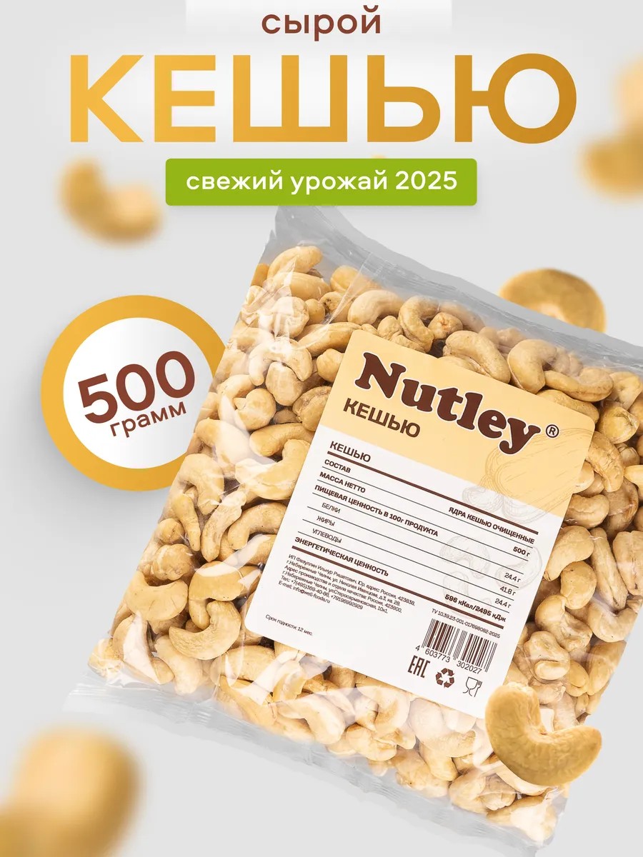 Сырой кешью Nutley, 500 г, целые — идеальный полезный перекус и основа здорового рациона!