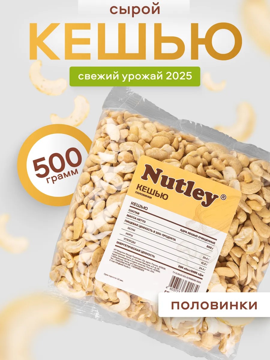 Сырой кешью Nutley, 500 г, половинки — идеальный полезный перекус и основа здорового рациона!
