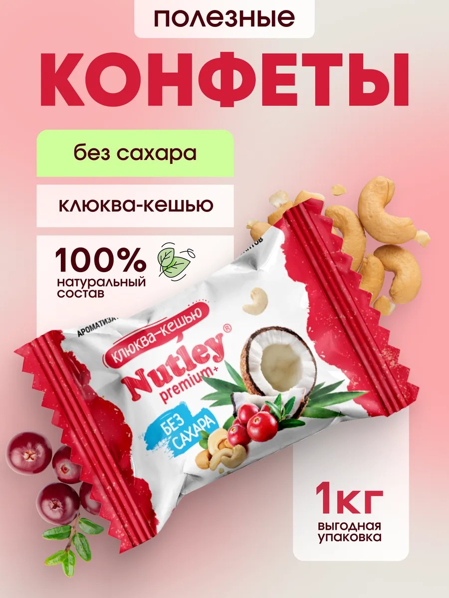 Nutley Полезные конфеты без сахара Premium+ "Клюква-Кешью" 1кг