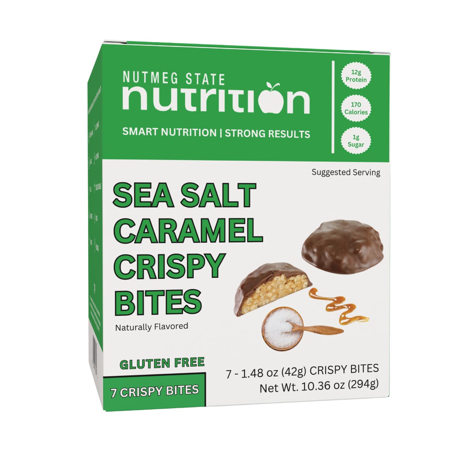 Nutmeg State Nutrition - High Protein Bites 12g Protein Low Calories 1g Sugar Gluten Free 7 Servings Per Box (1 Box Sea Salt & Caramel) Sea Salt & Caramel 1 Count (Pack of 1)