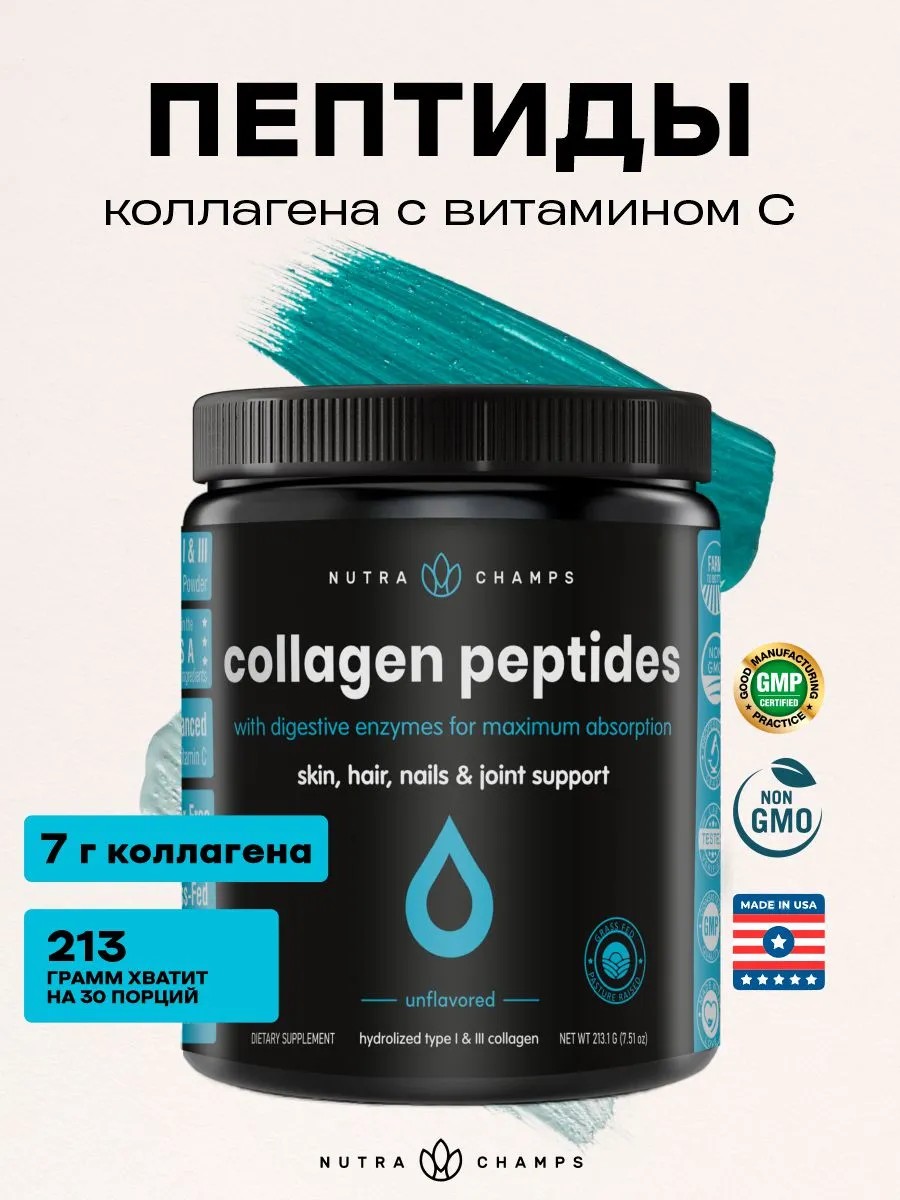 Пептиды коллагена с пищеварительными ферментами для максимального усвоения, без вкусовых добавок. Для здоровья кожи, волос, ногтей и суставов. Коллаген в порошке восстанавливает изнутри. Клиенты в восторге от сияющей, молодой, сияющей кожи и более сильных, здоровых волос и ногтей, которые они видят благодаря приему нашего коллагена. Попрощайтесь с ломкими ногтями, истонченными волосами и дряблой кожей - наш научно разработанный коллаген помогает улучшить эластичность кожи, уровень увлажненности и борется с морщинами и признаками старения. Но на этом дело не заканчивается - наш коллаген подвергается двойному гидролизу и обогащен витамином С для еще большей пользы для здоровья и красоты.