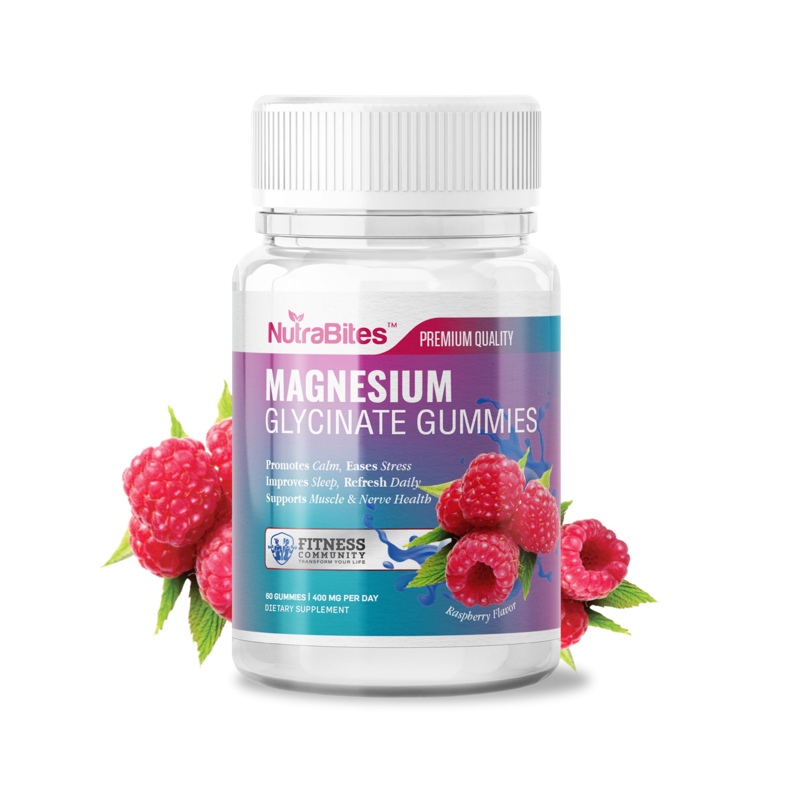 SUPPORT YOUR BODY'S NATURAL CALM WITH MAGNESIUM GLYCINATE GUMMIES In a world of constant stress, maintaining balance is key. Our Magnesium Glycinate Gummies are designed to provide the gentle, effective support you need for sleep, muscle health, and daily stress relief. We use Magnesium Glycinate, a form known for its superior absorption and low risk of digestive discomfort, so you can focus on feeling your best. WHY OUR MAGNESIUM GUMMIES STAND OUT: The "Calm" Mineral: Magnesium is essential for over 300 bodily functions, and it plays a critical role in calming your nervous system. By supporting your body's stress response, these gummies help you feel more relaxed and centered. Better Sleep, Naturally: If you struggle to quiet your mind at night, this is for you. Magnesium helps prepare your body for sleep, and when paired with Vitamin B6, it works to support your natural sleep cycle without the use of harsh sedatives. Muscle Nerve Support: For athletes or anyone experiencing muscle tension, magnesium is vital. It helps relax muscles and can alleviate cramps, making it an excellent choice for recovery after a long day or a tough workout. OUR COMMITMENT TO QUALITY: We believe in clean supplements that work. Our gummies are made with high-quality, plant-based ingredients in a GMP-certified facility. They are free from artificial colors, flavors, and preservatives, and are lab-tested for purity and potency. HOW TO USE: Take 2 gummies daily. We recommend taking them in the evening to support relaxation and a good night's sleep, or after a workout to aid in muscle recovery. Consistency is key. Ready to feel calmer and more rested? Add our Magnesium Glycinate Gummies to your routine today.CLEAN, VEGAN DELICIOUS: Our gummies are a tasty and convenient way to get your magnesium. They are Vegan, Non-GMO, and Gluten-Free, made with natural ingredients and a delicious raspberry flavor. SUPPORTS STRESS RELIEF MOOD: By aiding in the regulation of your nervous system, our gummies help support a balanced mood and provide natural stress relief. It's the perfect addition to your daily routine to help you unwind. RELIEVES MUSCLE TENSION CRAMPS: Magnesium is a crucial mineral for muscle and nerve function. It helps relieve muscle tension and can reduce the occurrence of leg cramps, making it ideal for post-workout recovery or a relaxing night in. PROMOTES DEEPER, RESTFUL SLEEP: This formula helps calm the mind and body, making it easier to fall asleep and stay asleep. Magnesium works with Vitamin B6 to support natural melatonin production, leading to deeper, more restorative rest without morning grogginess. GENTLE EFFECTIVE MAGNESIUM: Our gummies contain 400mg of Magnesium Glycinate, a highly bioavailable form of magnesium that is gentle on the stomach and effectively absorbed by the body. It helps promote a sense of calm and supports overall relaxation.