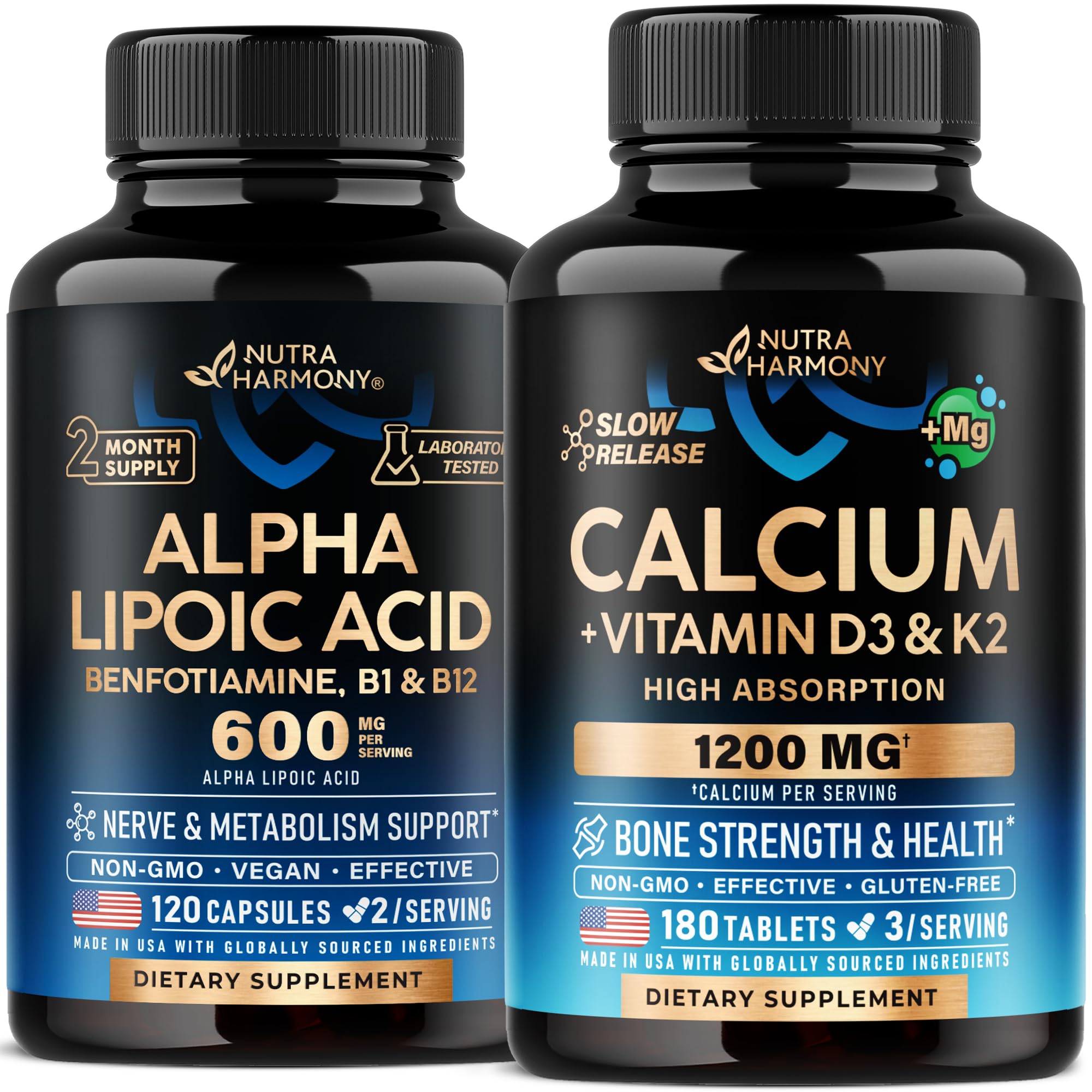 Alpha Lipoic Acid Capsules Calcium Tablets by Nutraharmony.