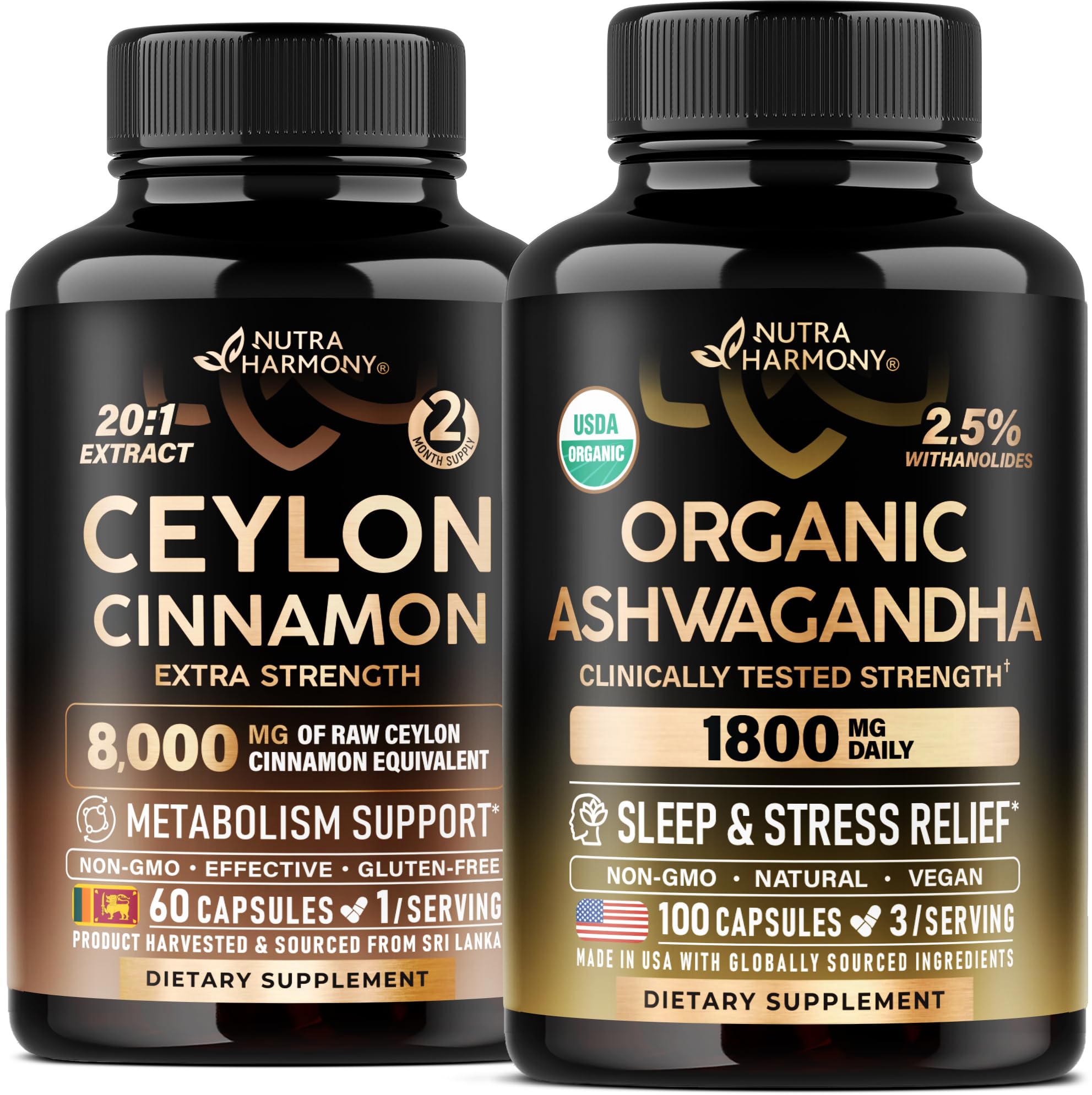 Ceylon Cinnamon Capsules Organic Ashwagandha Capsules by Nutraharmony.