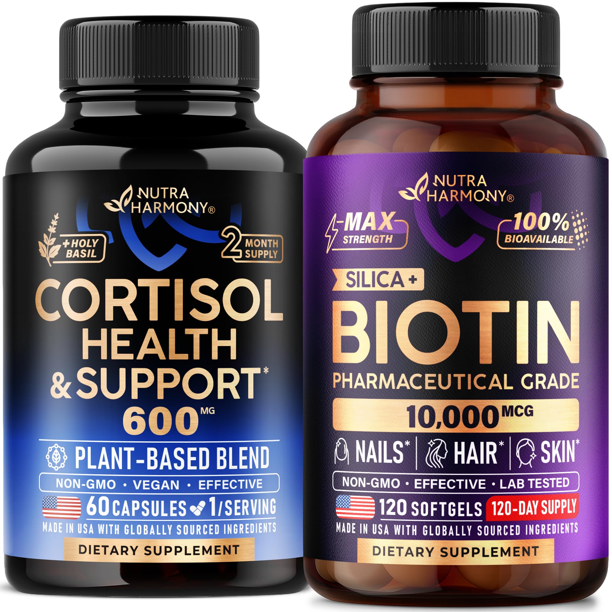 NUTRAHARMONY Cortisol Support Capsules & Biotin with Silicon Softgels