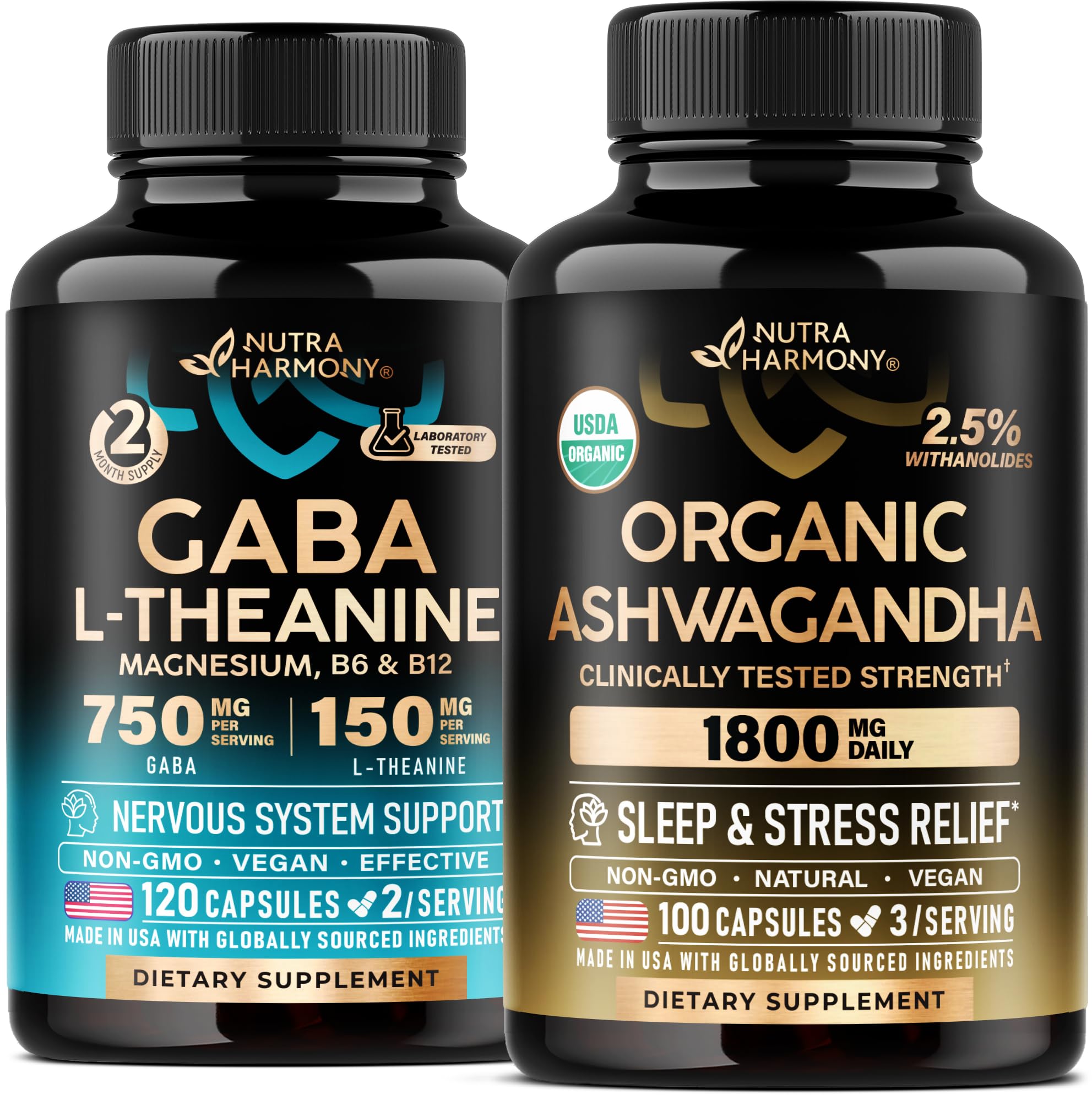 GABA L-Theanine Capsules Organic Ashwagandha Capsules by Nutraharmony.