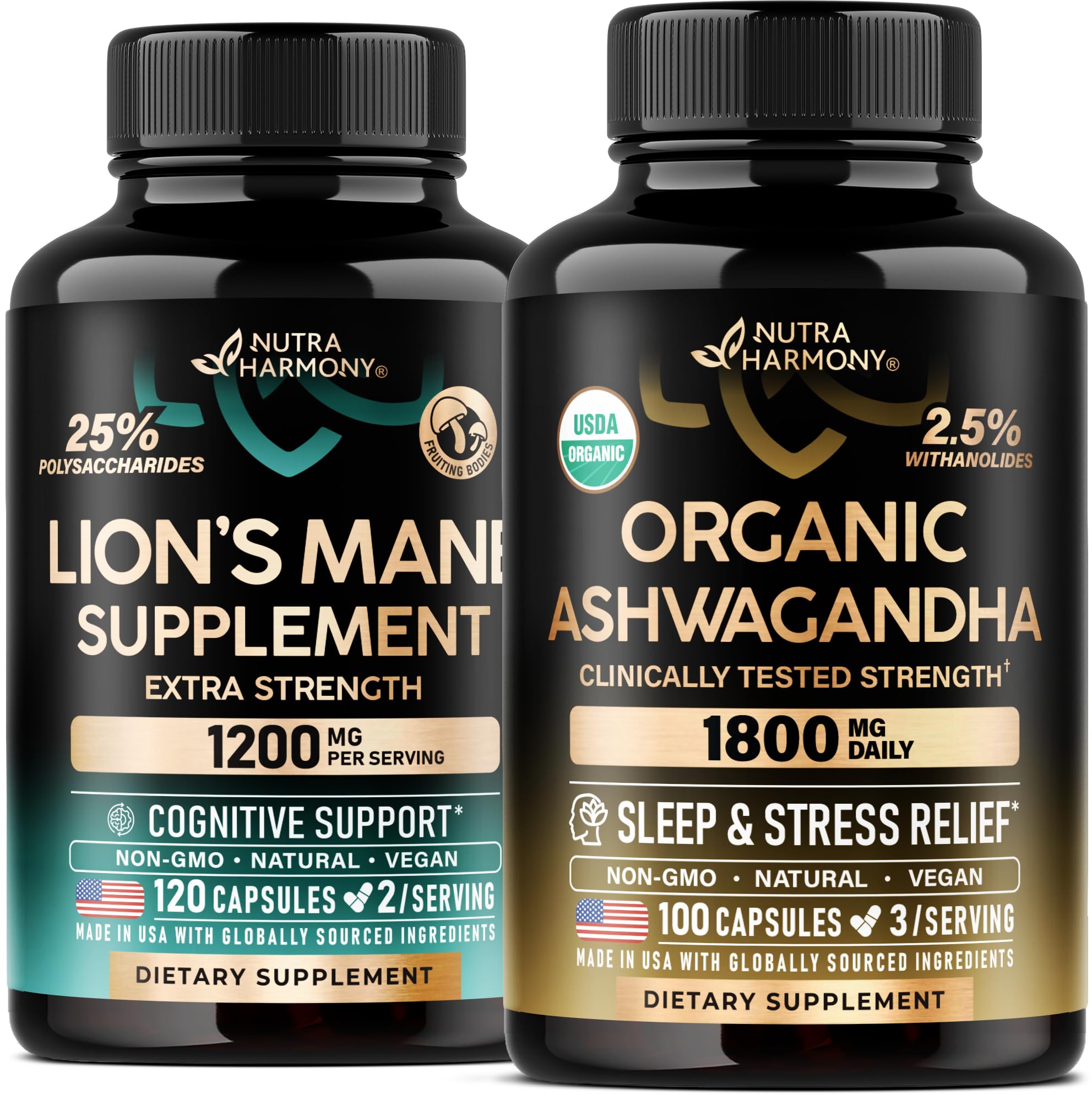 NUTRAHARMONY Lions Mane & Organic Ashwagandha Capsules