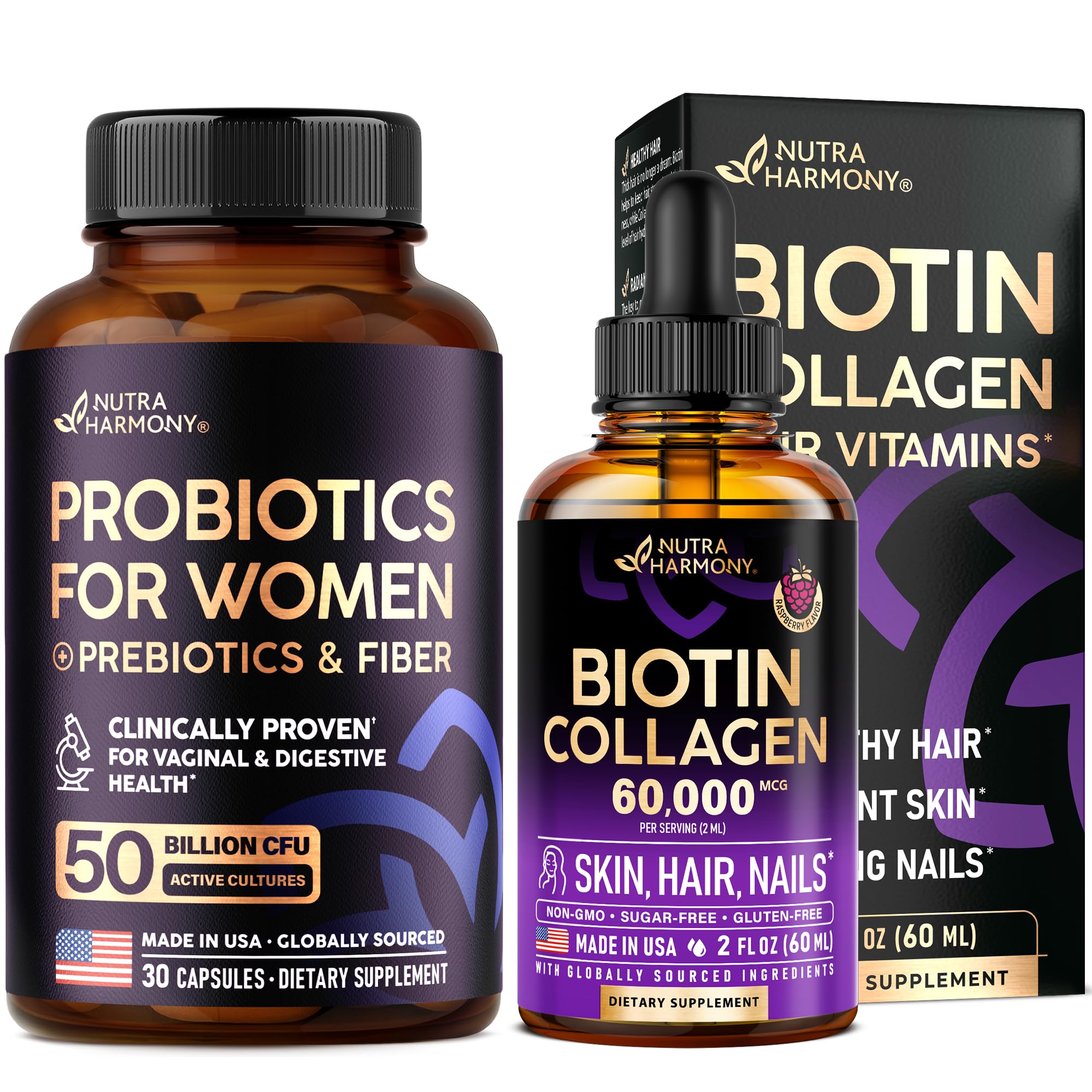 NUTRAHARMONY Liquid Biotin Collagen Drops & Probiotics for Women Capsules