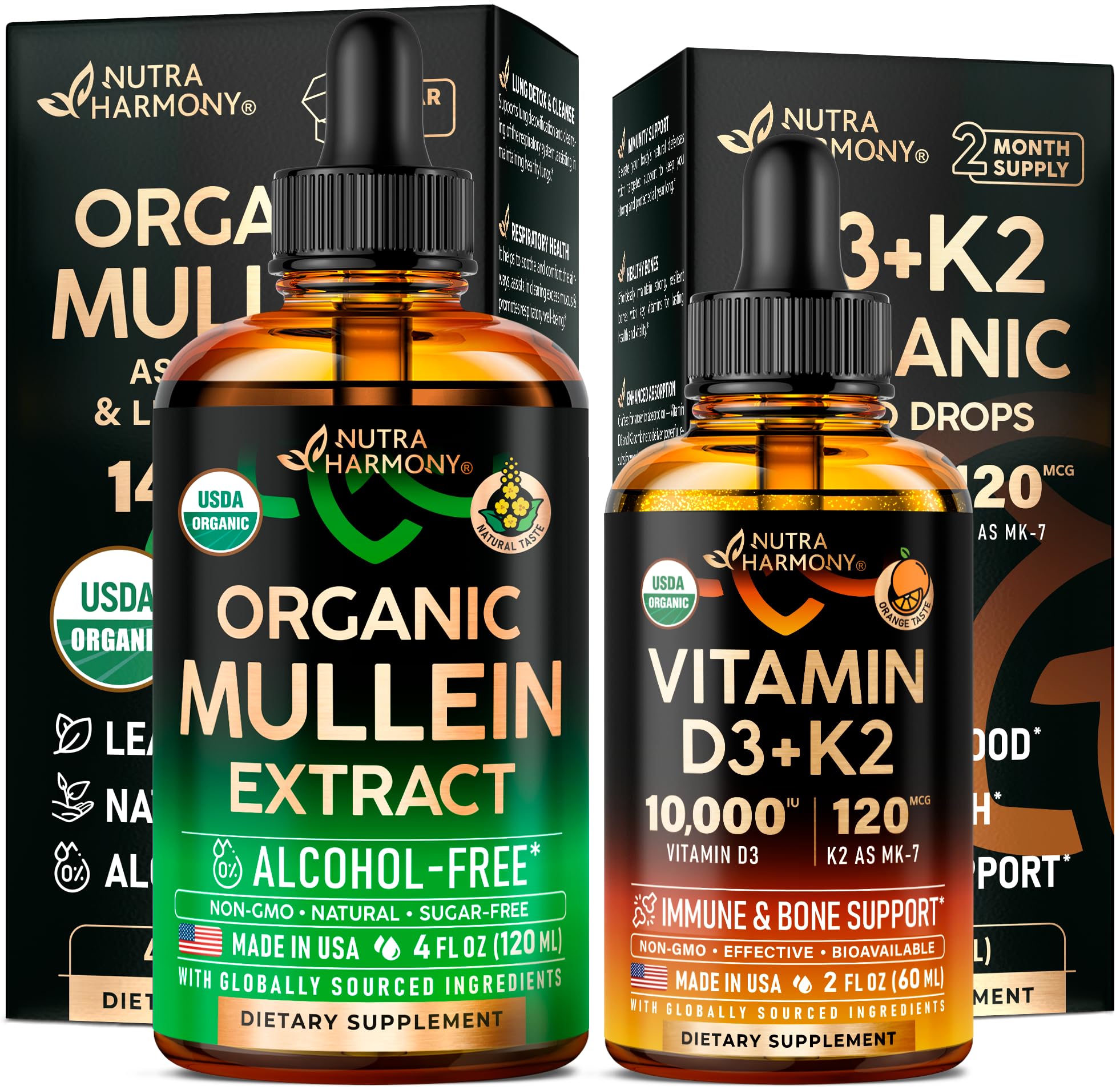 Organic Mullein Drops Vitamin D3 K2 Drops by Nutraharmony.