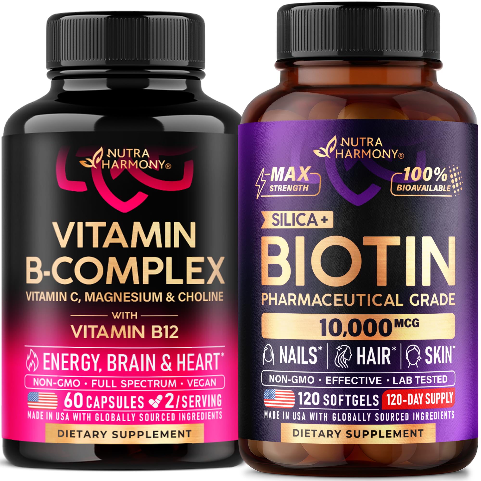 NUTRAHARMONY Vitamin B Complex Capsules & Biotin with Silicon Softgels