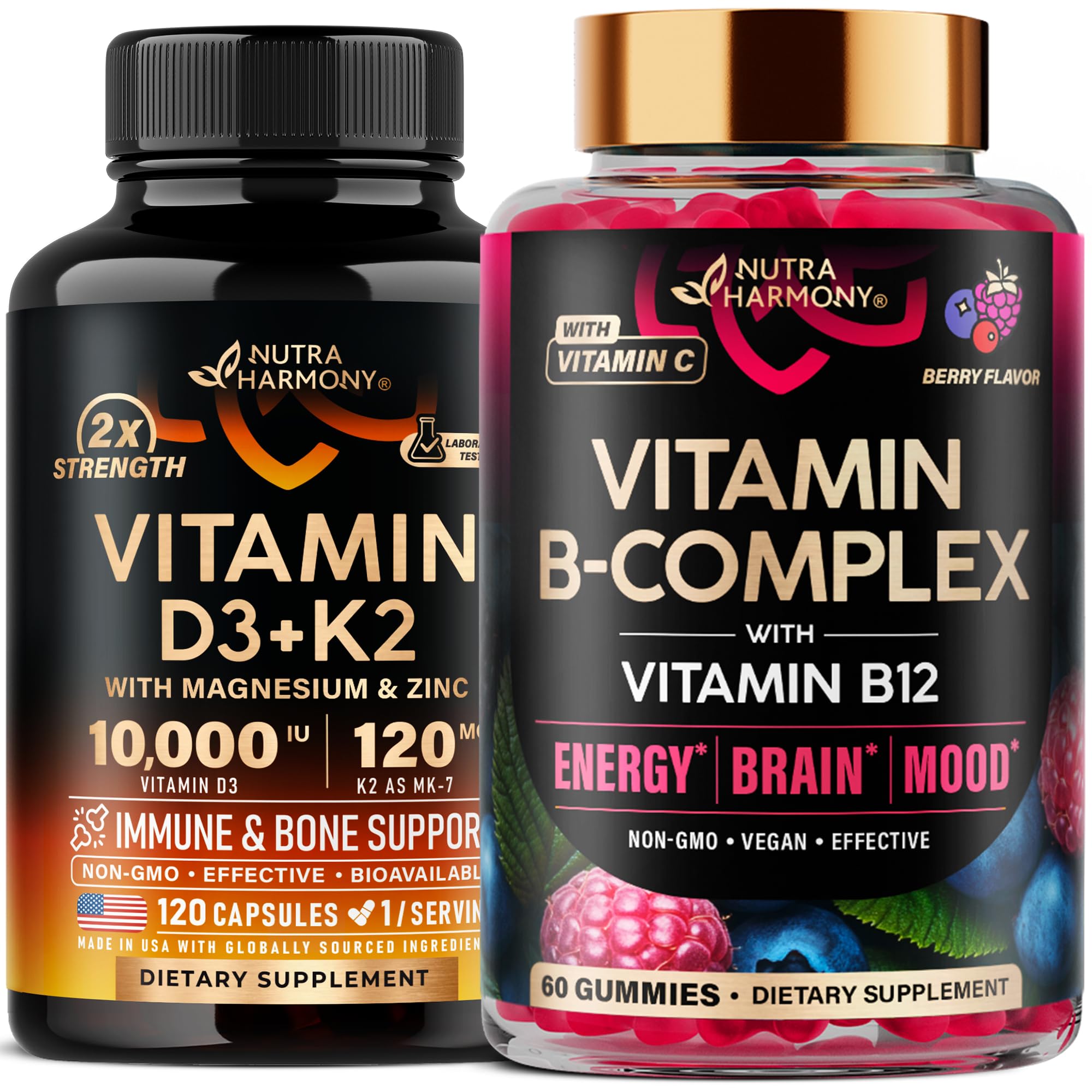 NUTRAHARMONY Vitamin D3 K2 Capsules & Vitamin B-Complex Gummies