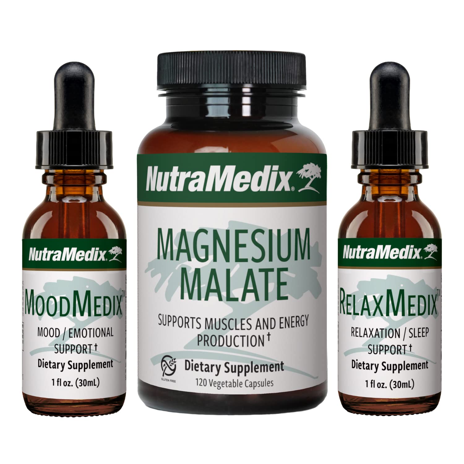 NutraMedix Stress Support Bundle - Supplements for Stress Support and Healthy Stress Response - Includes Magnesium Malate, MoodMedix & RelaxMedix - Liquid Extracts & Capsules for Stress - 3-Piece Set