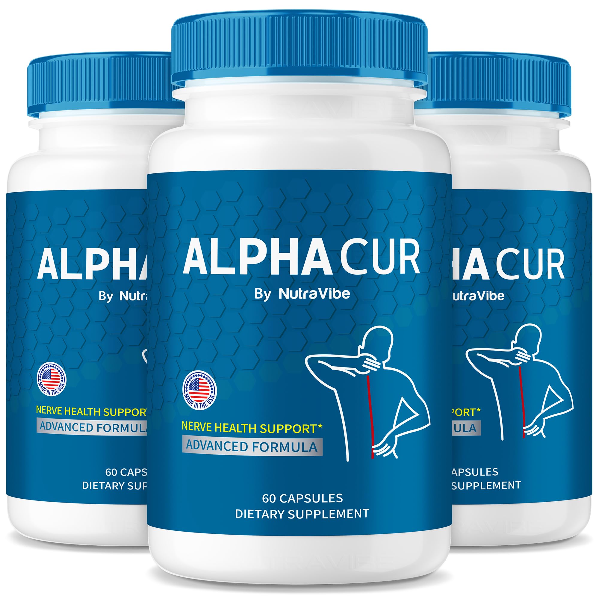 NutraVibe (3 Pack) AlphaCur Capsules Alphacur for Neuropathy All Natural AlphaCur Pills for Healthy Nerves Premium Alpha Cur Pastillas Review (180 Capsules)