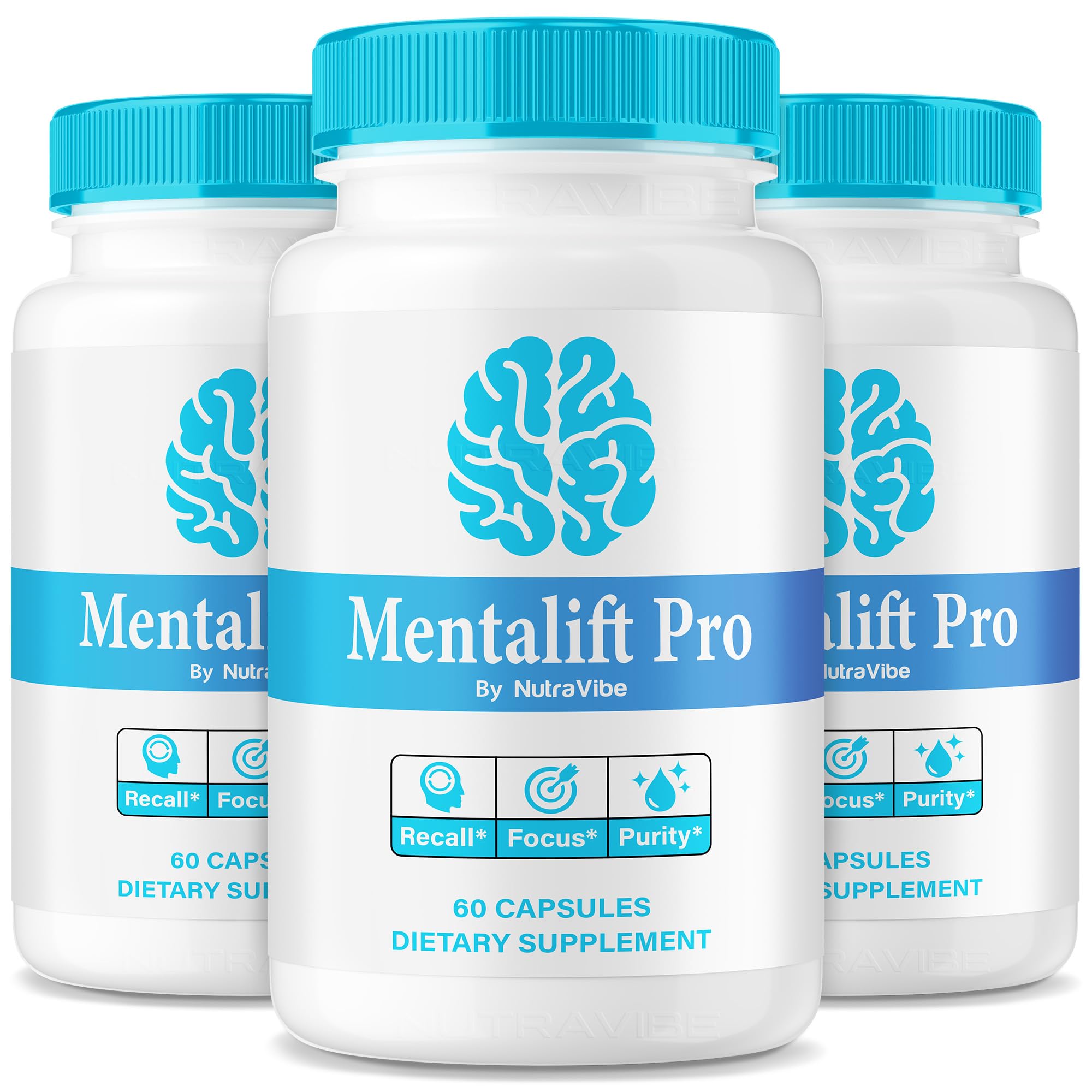 NutraVibe (3 Pack) Mentalift Pro Official MentaliftPro Premium Formula with Natural Ingredients Supports for Focus Memory & Sharp Clarity | Easy-to-Take 90 Day Supply (180 Capsules)