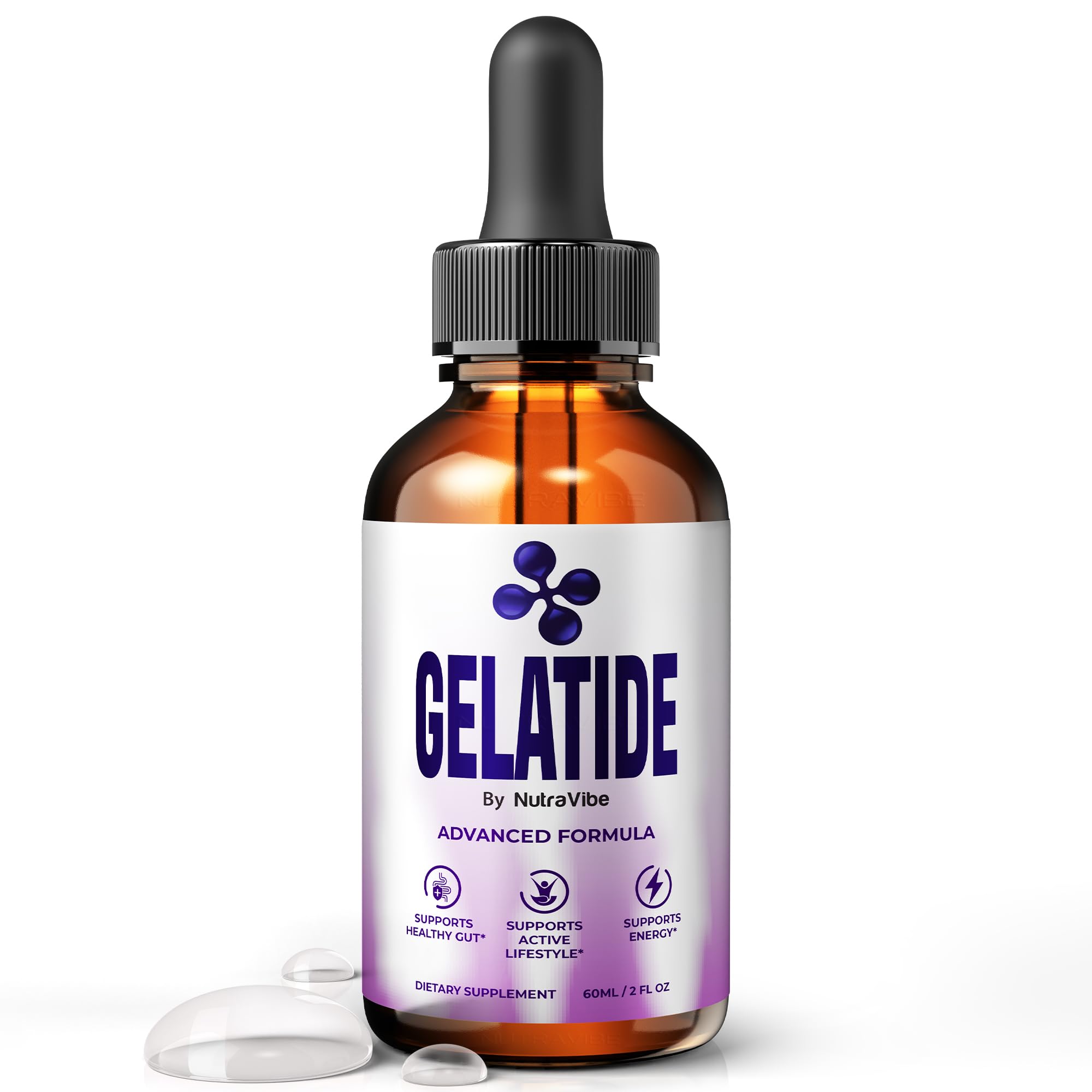 NutraVibe Gelatide Liquid Drops Natural Body Balance Support | Premium Supplement for Energy & Healthy-Looking Shape | Easy Sublingual Formula Non-Habit Forming Gelatide Official (30 Servings)