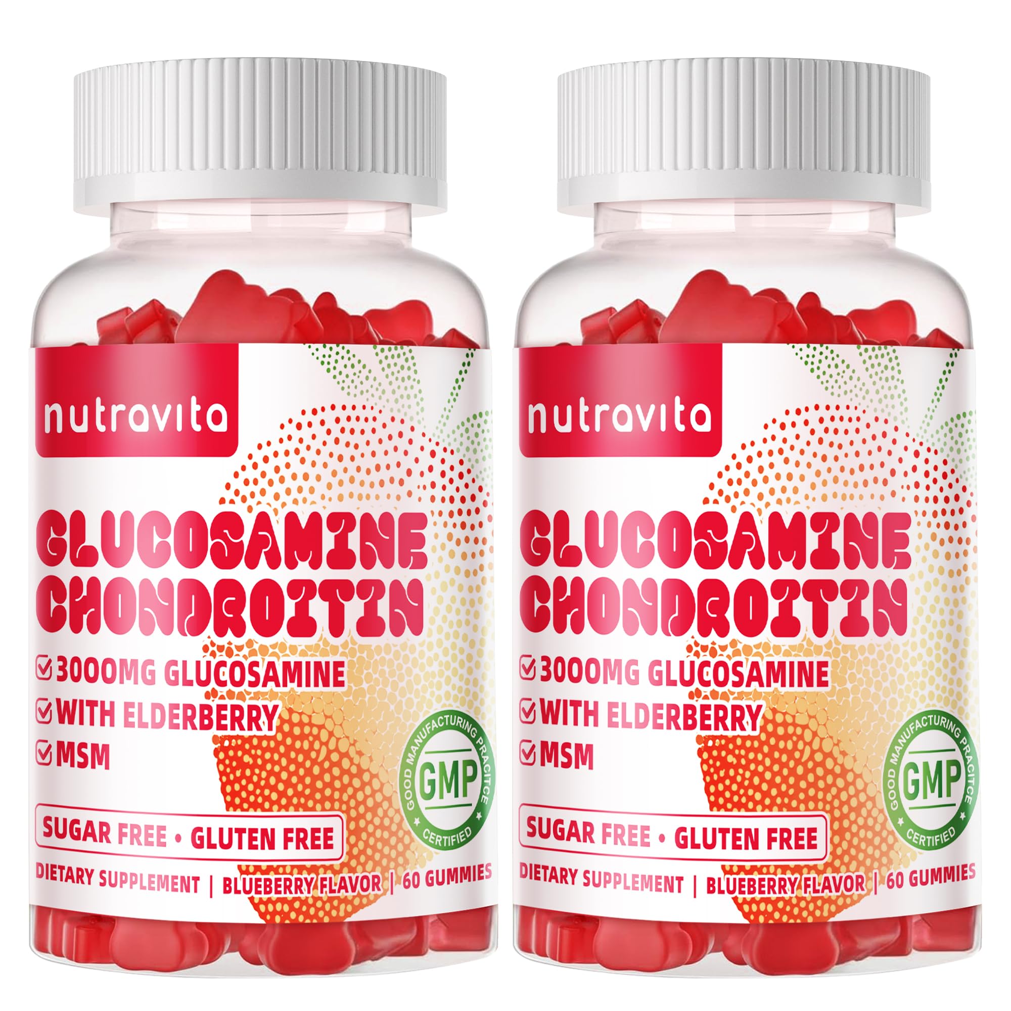 This yummy over-the-top blend is made with no soy, no eggs, no dairy, no nuts, no gelatin, no GMO, no artificial color, flavor or sweetener no preservatives. Our glucosamine Chondroitin gummies can provide an easy and delicious way to consume the powerful ingredients needed for joint support. And with everyone's favorite elderberry-flavored pectin, it's pleasant and easy to chew. An joint support supplement like none other. Glucosamine is key for the formation of cartilage, as essential building block for your joints as it helps support mobility and flexibility Chondroitin allows the attraction of fluids to your joints for lubrication and supports strength by assisting compression in the joints MSM is a rich source of organic sulfur and helps joints. These joint support supplement Glucosamine Chondroitin Gummies are loaded with 1500mg glucosamine, 500mg MSM and 200mg Chondroitin to help assist with comfort, strength, mobility, flexibility and lubrication. Glucosamine Chondroitin Gummies were created for those who seek a delicious and powerful health supplement! Our Glucosamine Chondroitin candies are specially designed in extremely cute shapes and offer an easy and delicious way to consume the powerful ingredients needed for joint support. Enjoy the sweet taste and mouth-watering smell while improving your health.