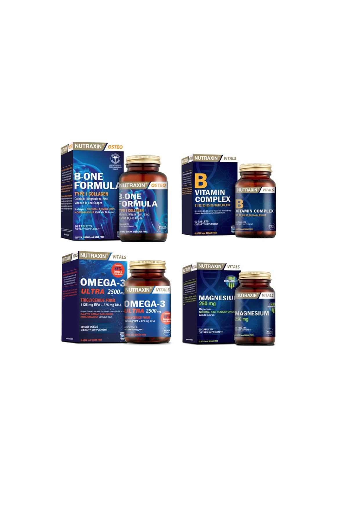Nutraxin B-one Formula 90 Tablets +omega 3 Ultra 2500 Mg 30 Capsules B Vitamin Complex +magnesium