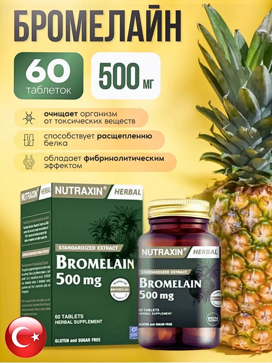 Бромелайн Для пищеварения 60-таблеток по 500мг Турция