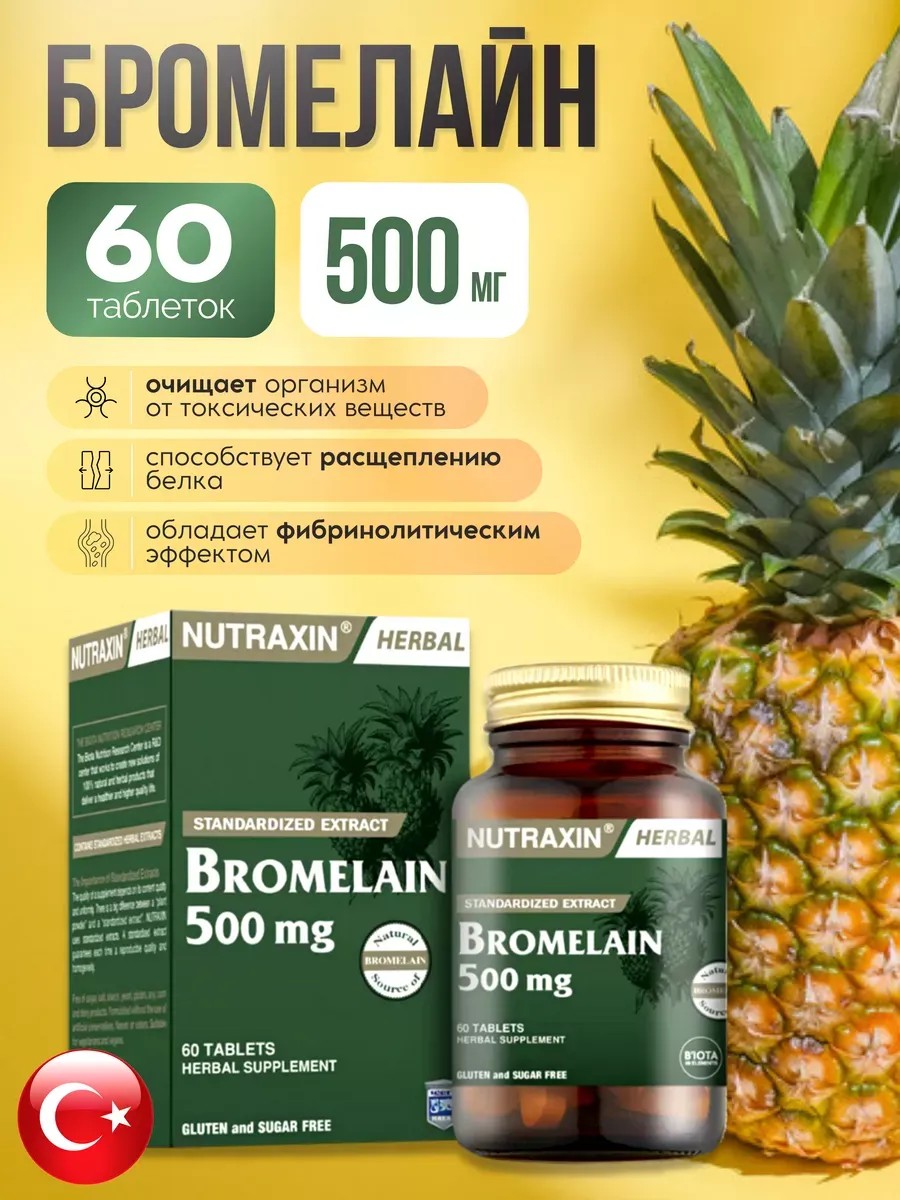 | Комплектация | Бромелайн таблетки - 60 штук |