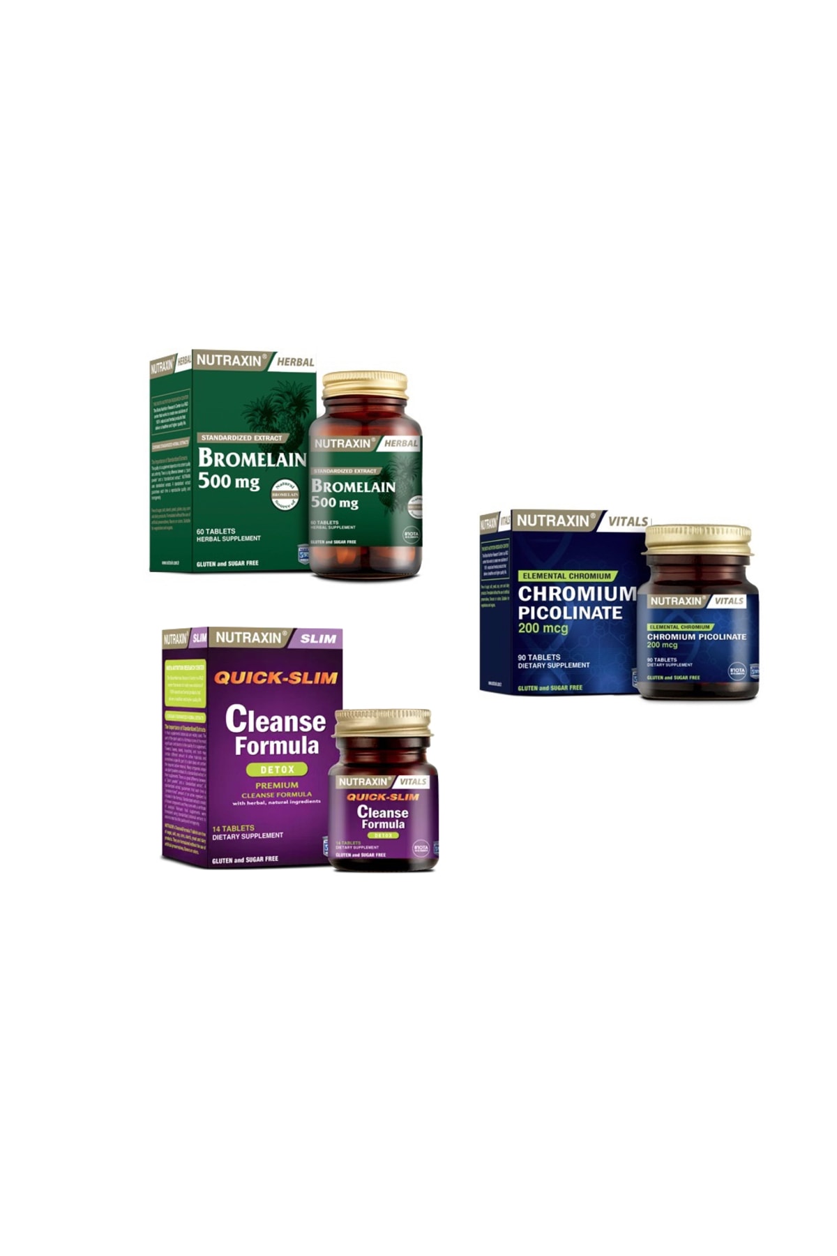 Nutraxin Cleanse Formula 7 Detox 14 Tablets + bromelain 500 Mg 60 Capsules + Chromium Picolinate (chrome) 90 Tablets