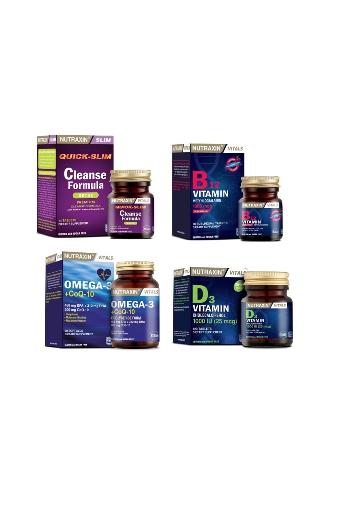Nutraxin Cleanse Formula 7 Detox 14 Tablets + Omega 3 + coq-10 (coenzyme) 60 Capsules + Vitamin B12 and D3
