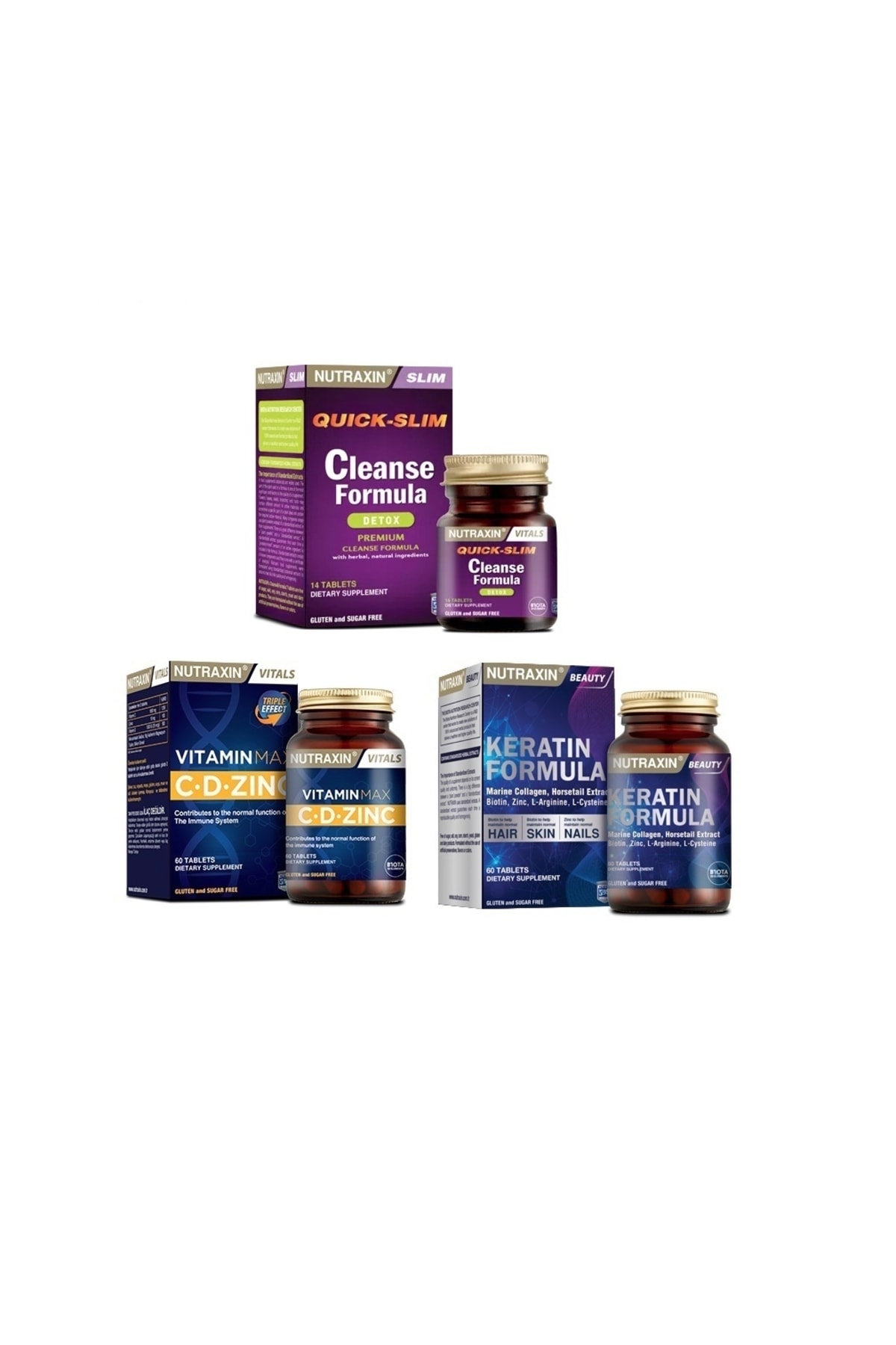 Nutraxin Cleanse Formula 7 Detox 14 Tablets + Vitamin Max (c d zinc) 60 Tablets + Keratin for Hair and Nails