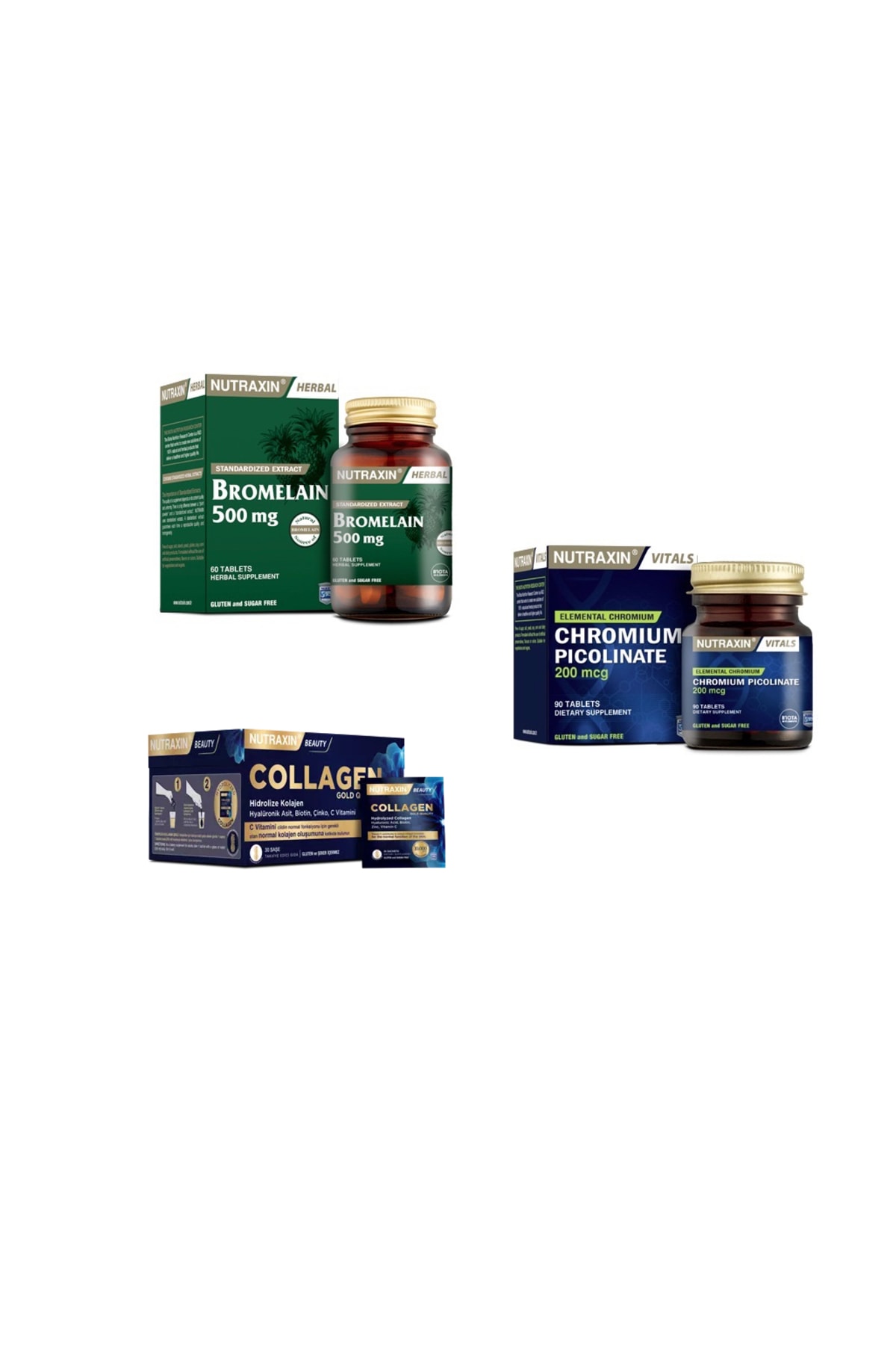 Nutraxin Collagen 30 Sachet 10000 Mg + bromelain 500 Mg 60 Capsules + Chromium Picolinate (chrome) 90 Tablets