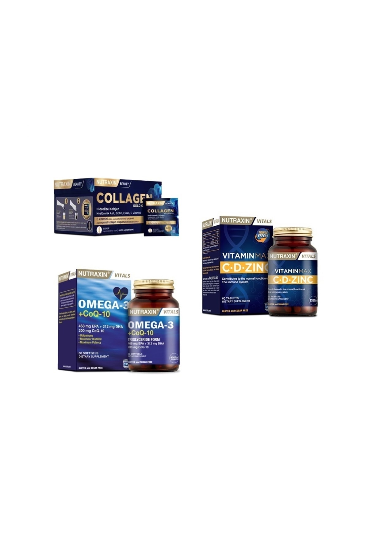 Nutraxin Collagen 30 Sachet 10000 Mg + omega 3 + coq-10 (coenzyme) 60 Capsules + vitamin Max (c d zinc) 60 Tablets