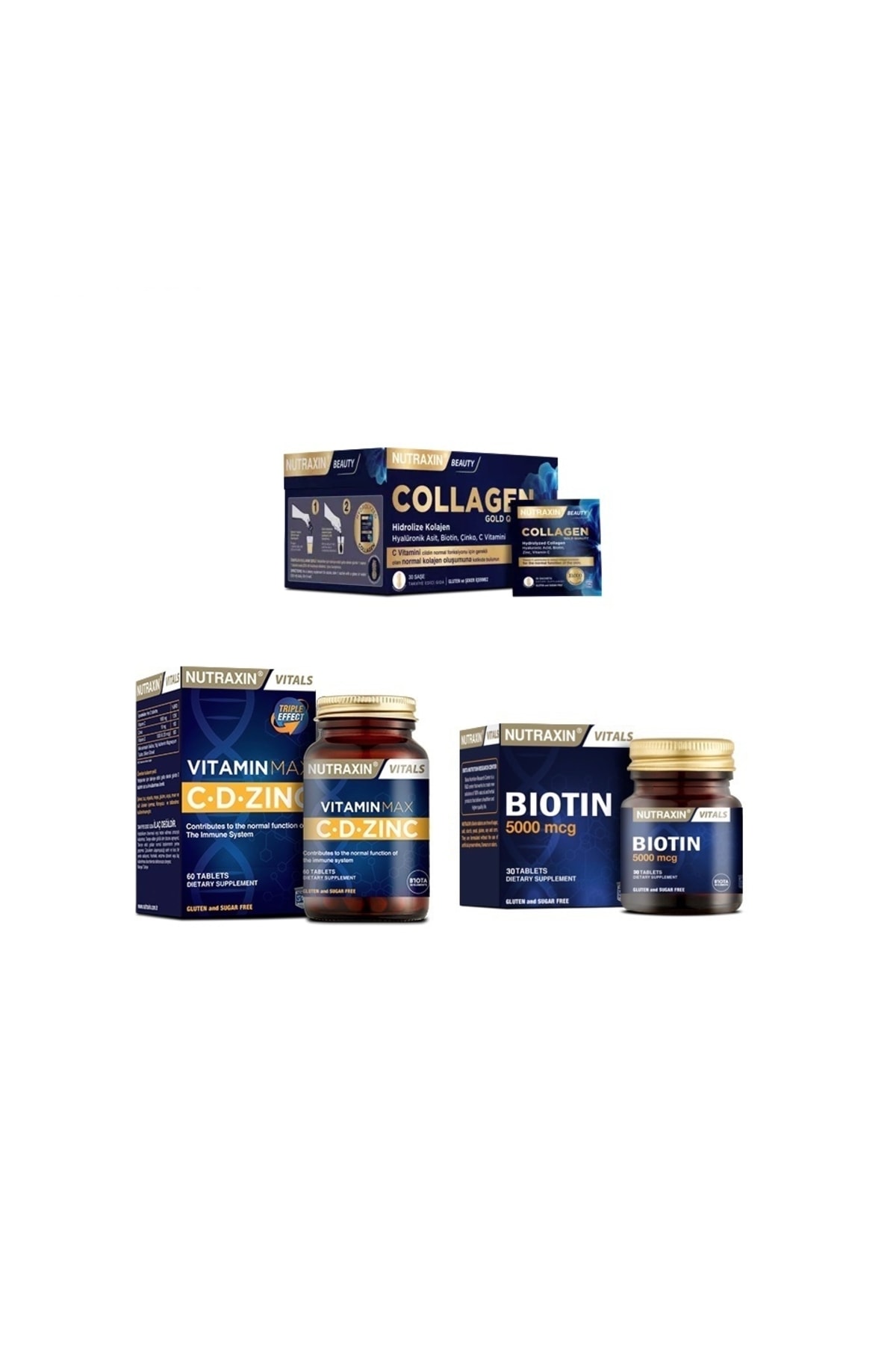 Nutraxin Collagen 30 Sachet 10000 Mg + Vitamin Max (c d zinc) 60 Tablets + Biotin 5000 Mcg 30 Tablets