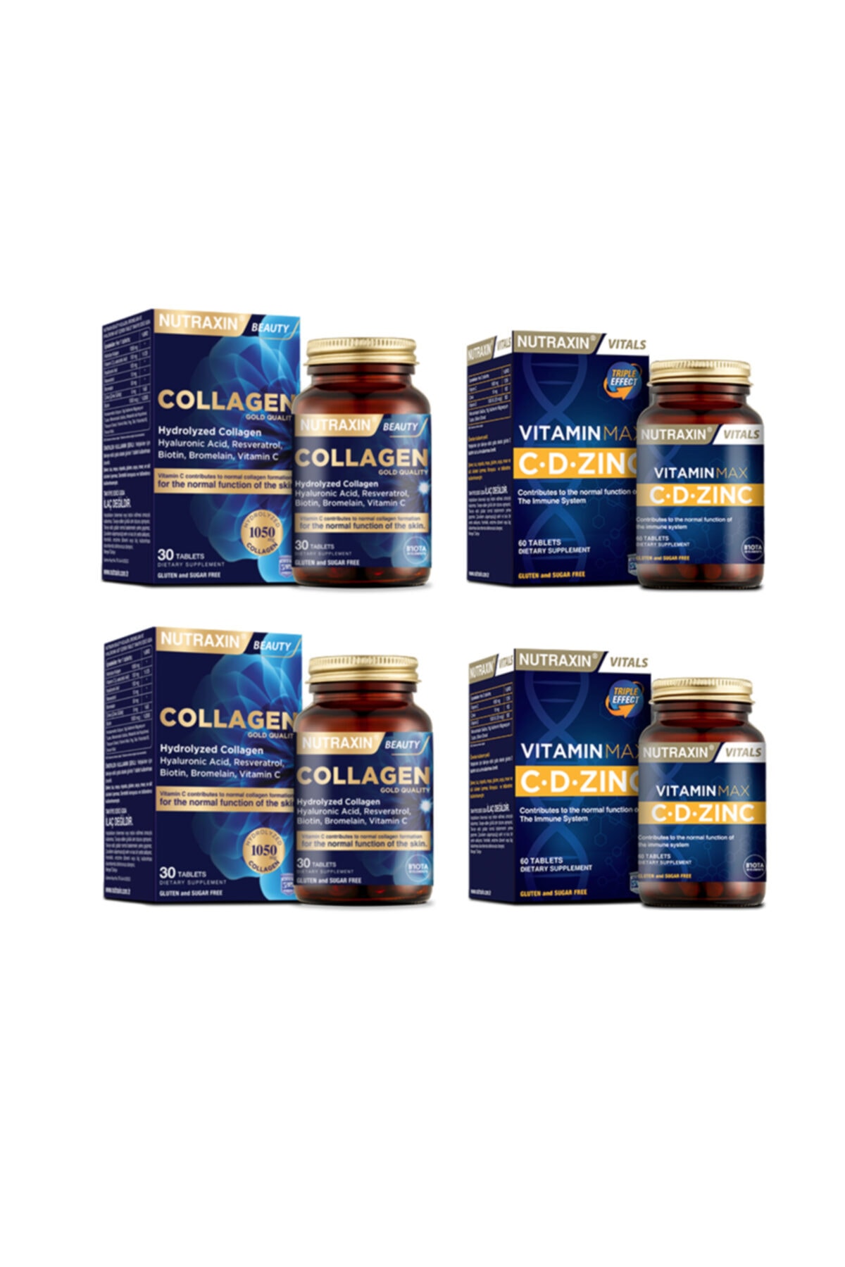 Nutraxin Hydrolyzed Collagen Hyaluronic Acid 30 Tablets X2 Pieces + Vitamin Max (c D Zinc)60 Tablets X2 Pieces