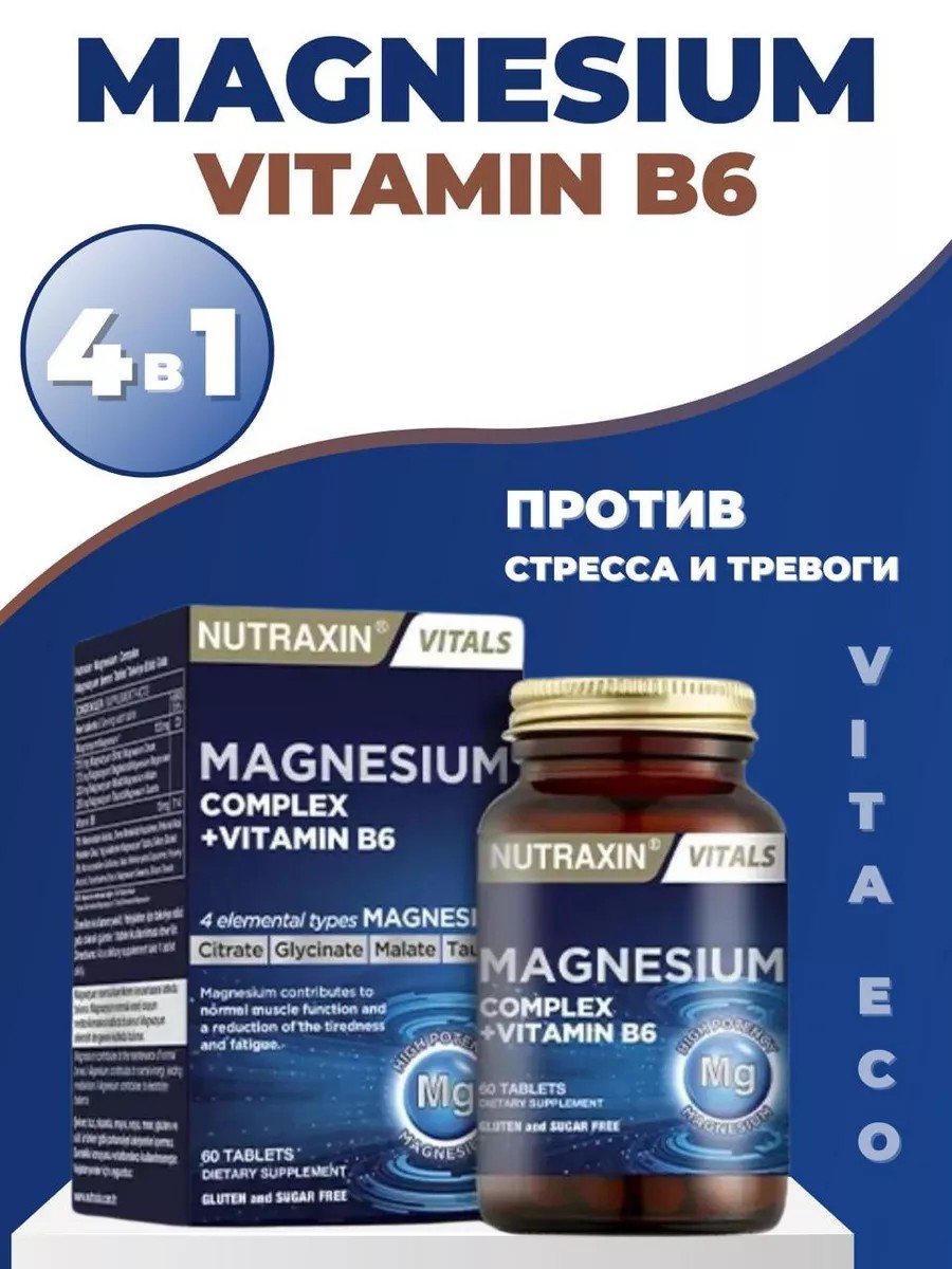 Magnesim Complex vitamin B6 magnesium in four forms in one tablet. Specially formulated to enhance absorption and action: bisglycinate, malate, citrate, and magnesium taurate.