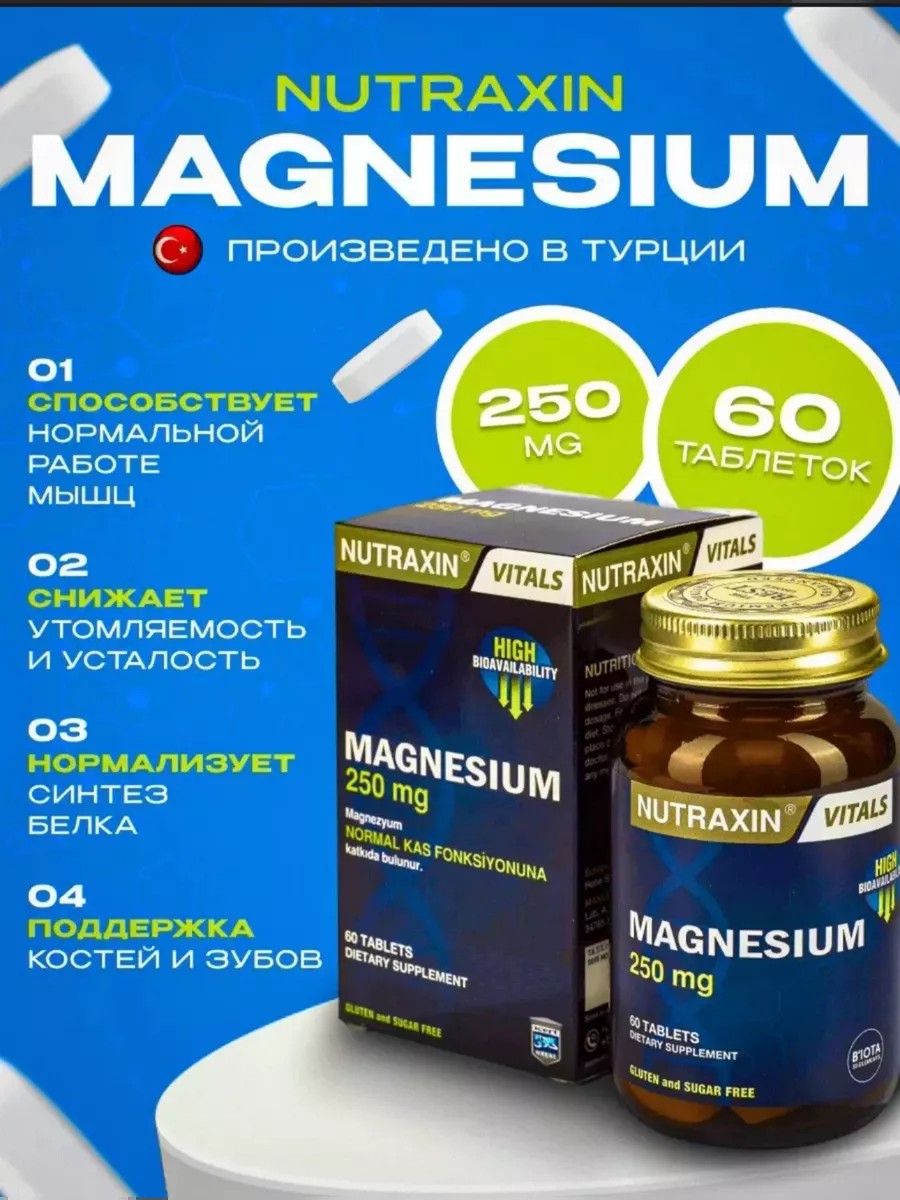 Nutraxin Magnesium в своем составе содержит магний - один из семи основных макроминералов, которые нужно употреблять в относительно больших количествах для поддержания здоровья (по меньшей мере 100 мг) в день. Сбалансированный рацион может обеспечивать потребности в магнии лишь до 25 лет. Далее с возрастом понижается способность кишечника всасывать полезные элементы. Поэтому магний необходимо включать в рацион в виде пищевых добавок.Способствует снятию усталости и при истощении