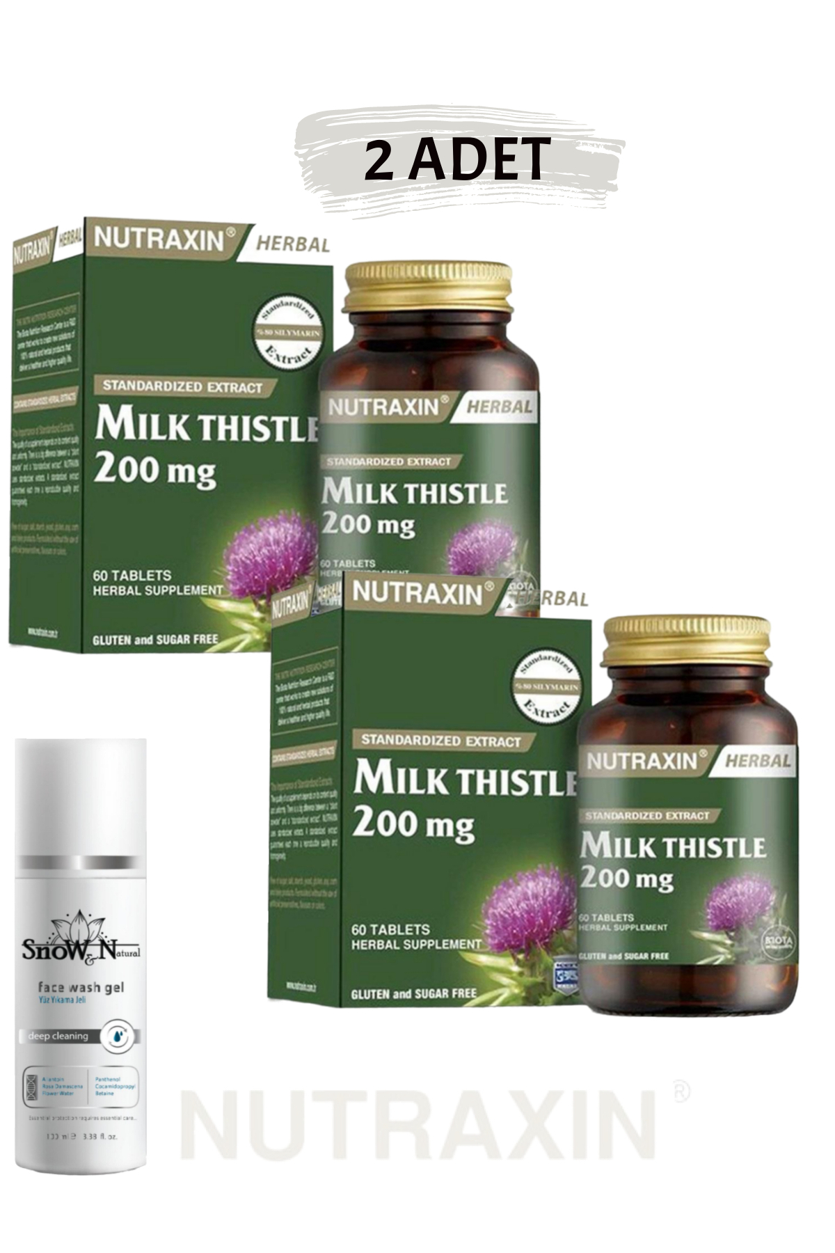 Nutraxin Milk Thistle 60 Tablets Milk Thistle Seed Extract (2 PCS) & (1 PCS Facial Cleansing Gel) //set01414//