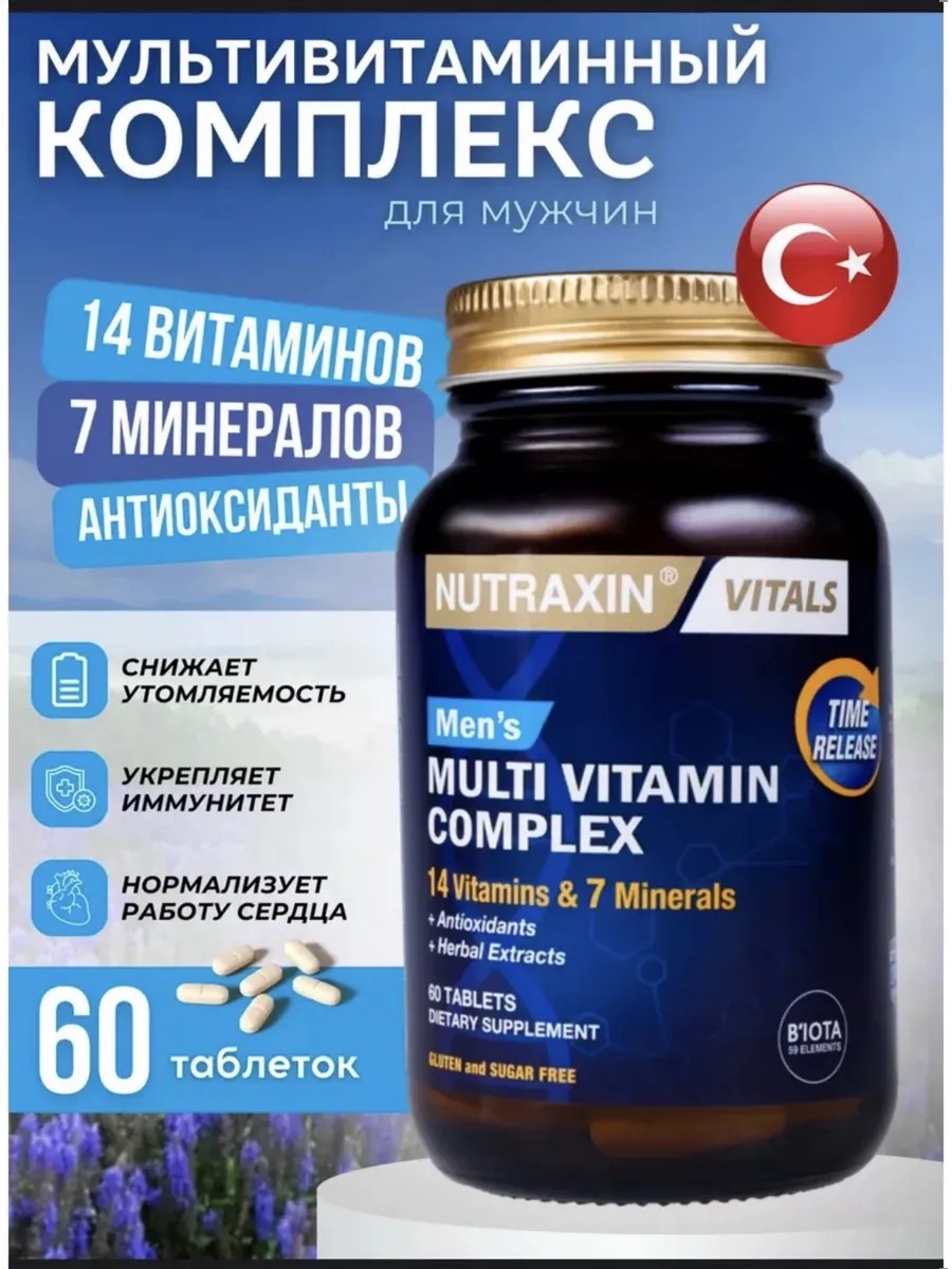 Поливитаминно-минеральный комплекс Nutraxin; Это особая формула, содержащая необходимые мужчинам витамины, минералы и травы. Мультивитаминно-минеральный комплекс, подходящий для ежедневного использования, имеет таблетку с замедленным высвобождением. Цинк способствует поддержанию нормального уровня тестостерона