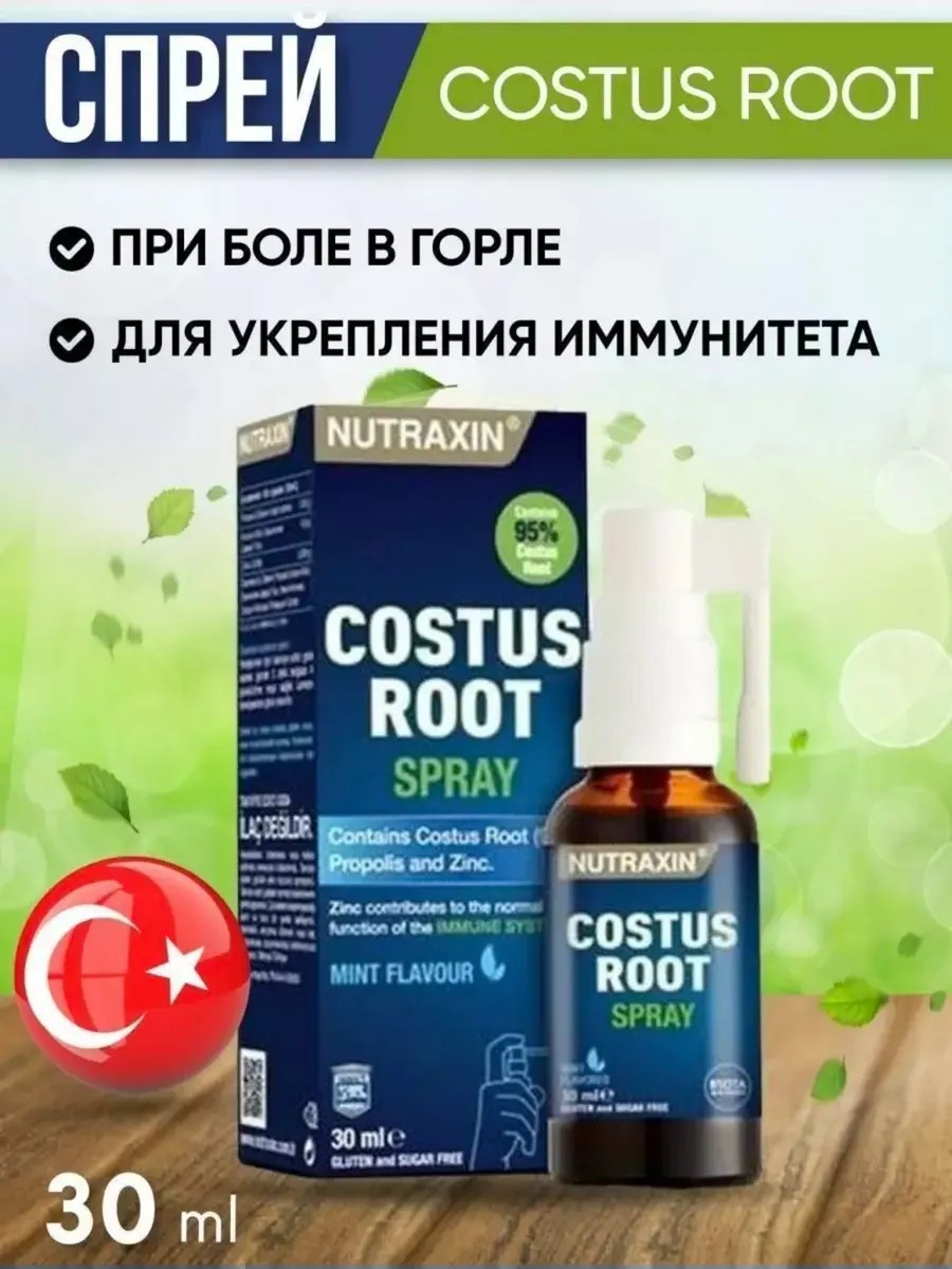 Спрей Nutraxin Costus Root содержит костус, прополис и цинк. Костус (Кыст аль Хинди) - это многолетнее растение, растущее в Индии и ближайших странах.