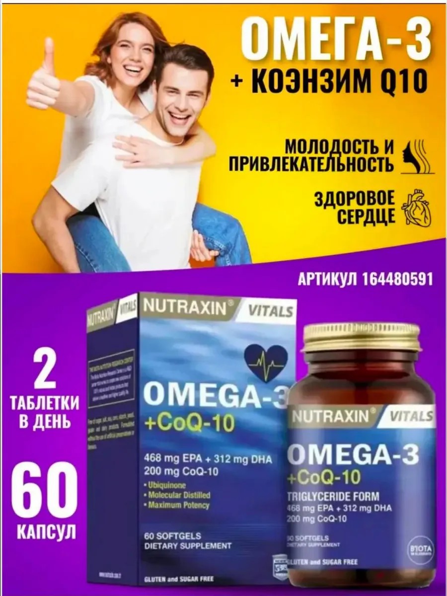 | Комплектация | омега 3 рыбий жир турция; коэнзим ку 10 |