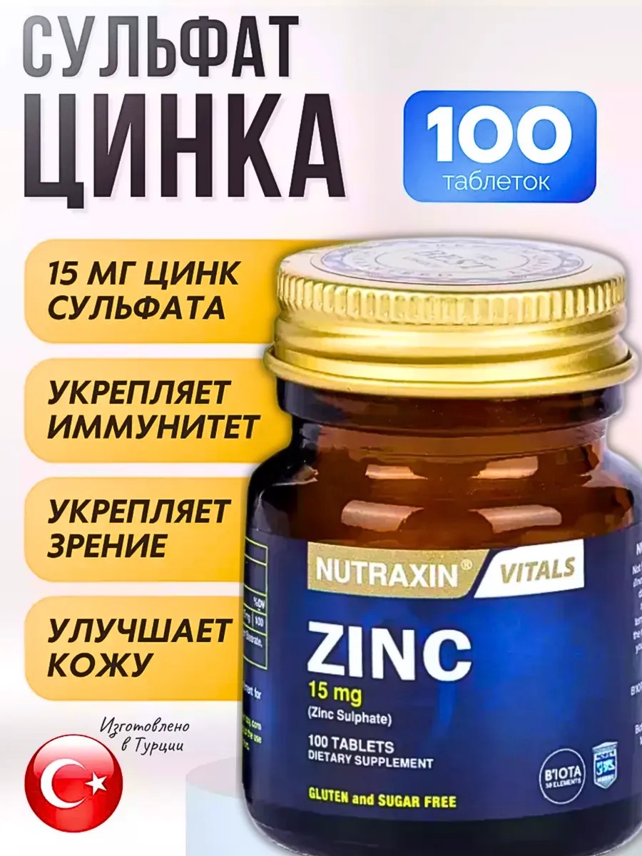 NUTRAXIN Сульфат цинка 15мг 100 таблеток из Турции