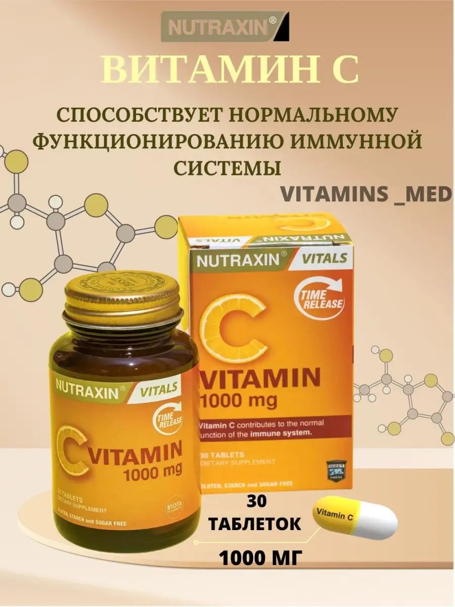 NUTRAXIN Vitamin C - 1000 мг. Бодрость и жизненная сила, 30 таб.