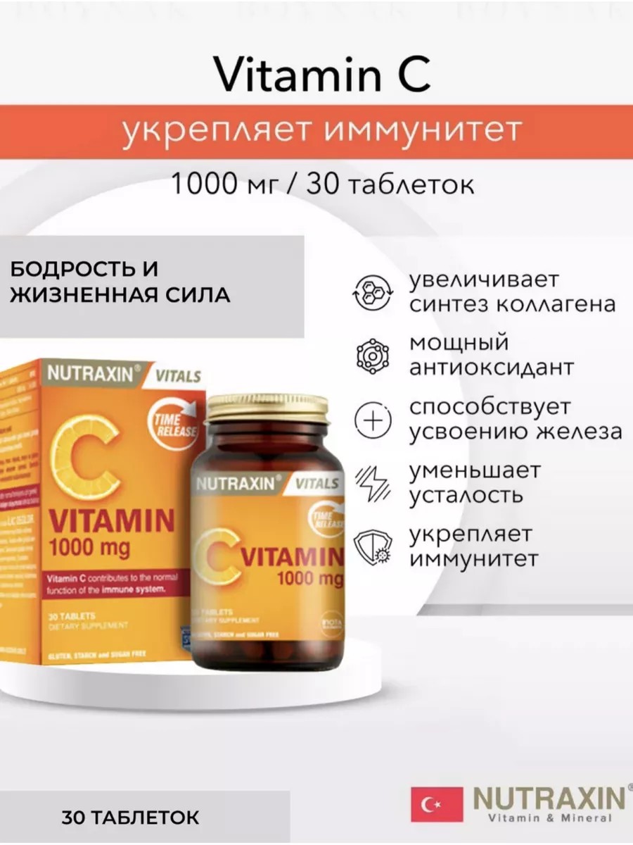 Область примененияДефицит витамина СПри повышенных физических и умственных нагрузкахВ комплексной терапии простудных заболеваний, ОРВИПри астенических состоянияхВ период восстановления после перенесенных заболеванийВо время беременности (особенно многоплодная, на фоне никотиновой или лекарственной зависимости)Рекомендации по применениюПо 1 таблетке 2 раза в день. Возраст: 12+ПротивопоказанияПовышенная чувствительность к любому из компонентов. Меры предосторожностиНе превышать рекомендованное количество для ежедневного употребления. Не заменять диетической добавкой полноценный рацион питания. Беременным и кормящим женщинам и людям, которые принимают лекарства или проходят медикаментозное лечение, следует проконсультироваться с врачом перед употреблением продукта. Специально разработана сбалансированная формула продукта содержит исключительно стандартизированные экстракты и сырье от ведущих поставщиков для обеспечения высокого качества продукции. Возраст: 12+Особые указанияБиологически активная добавка к пище, не является лекарственным средством. Перед применением рекомендуется проконсультироваться с врачом. Условия хранения Продукт следует хранить в недоступном для детей месте при температуре от 15°С до 25°С и относительной влажности воздуха не более 60%.Витамин C (аскорбиновая кислота) - это органическое вещество, необходимое для нормального функционирования всех систем организма. Он участвует во многих биохимических реакциях, стимулирует выработку нейромедиаторов, белков, коферментов и других важных для здоровья веществ, способствует восстановлению тканей, регулированию метаболических процессов, повышает защитные свойства организма, замедляет старение, а также обладает массой других полезных свойств. Его можно получить из свежих овощей, фруктов и ягод (капуста, картофель, помидоры, зелень, перец, цитрусовые, облепиха, смородина, шиповник и другие). В идеале, овощи и фрукты не должны подвергаться обработке пестицидами, нитратами и другими вредными веществами, увеличивающими урожайность у производителей. Также нужно учитывать, что витамин C не стабилен, и при термической обработке или неправильном хранении все продукты теряют значительную концентрацию этого полезного вещества. Nutraxin Vitamin С - это натуральный биофлавоноидний комплекс, содержащий растительные стандартизированные экстракты цитрусовых и шиповника для обеспечения нормального функционирования иммунной системы, усвояемостью, биодоступностью и хорошо сохраняется в клетках, а также обладает большей способностью к противодействию активности свободных радикалов.