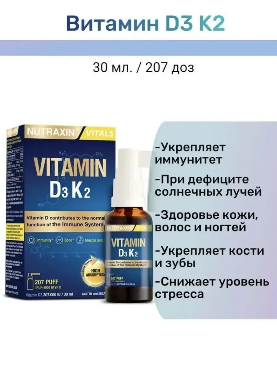 | Комплектация | Витамин Д3 К2 спрей 30мл. Нутраксин.Vitamin D3 K2-1шт |