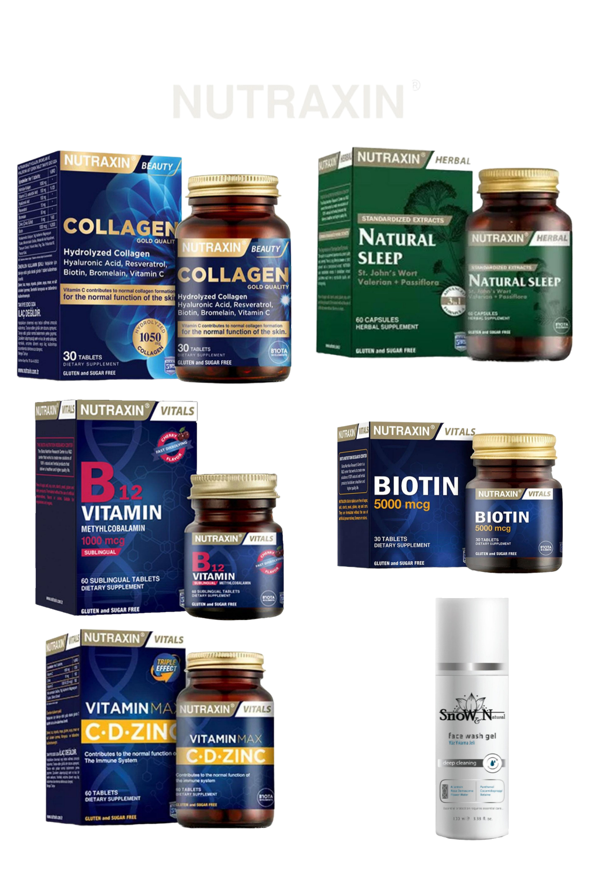Nutraxin Vitamin Max CD-Zinc60 Tablet+B12 Vitamin 60 Tablet+Natural Sleep+Biotin 5000 mg+Collagen 30 Tablet