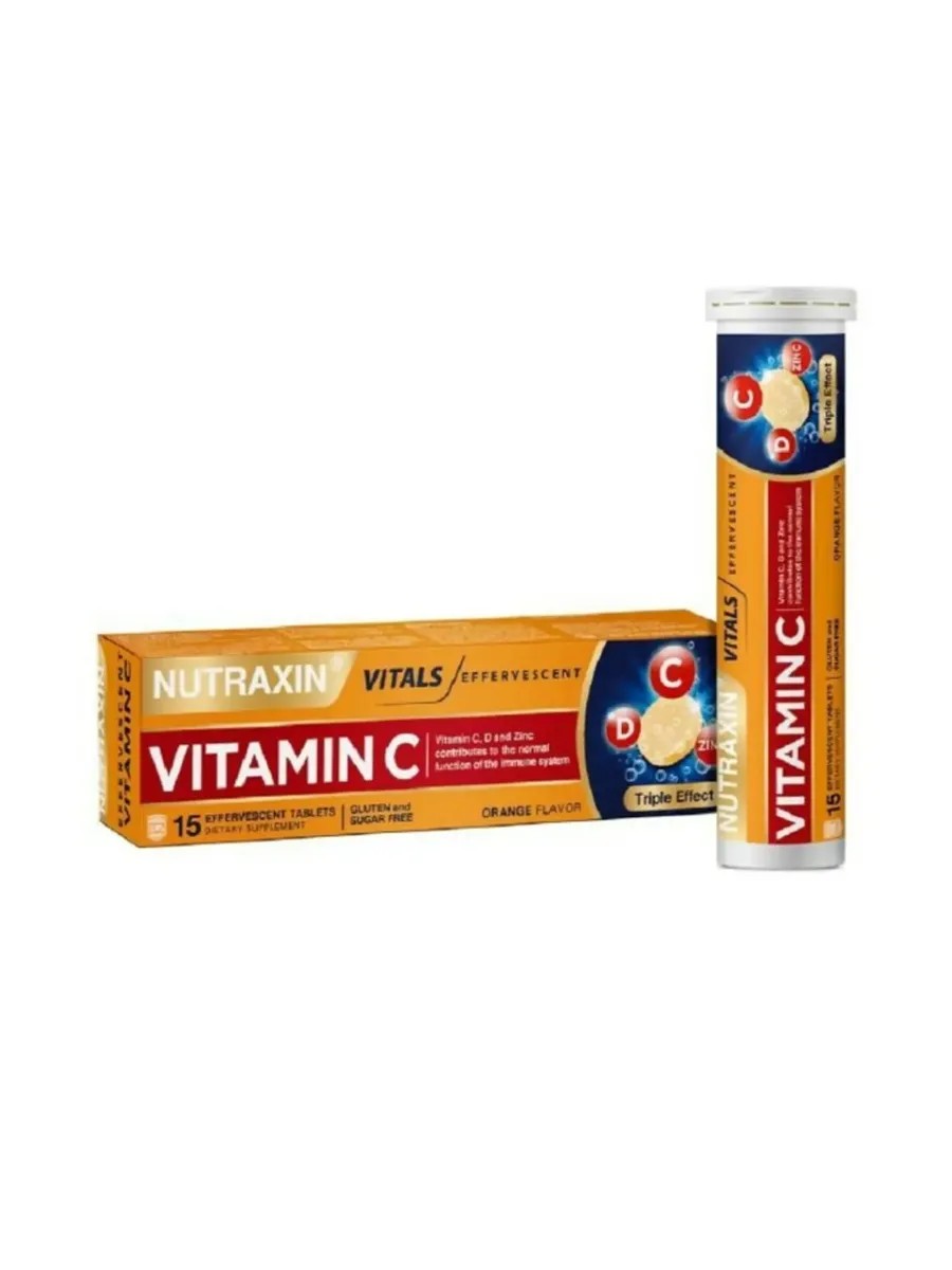 Nutraxin Vitamin C D ZINC contains three powerful components: vitamin C, vitamin D, and zinc. Vitamin C, the worst enemy of viruses, strengthens the body's defenses. Vitamin D is a unique adaptive immunomodulator. Zinc is one of the few substances that simultaneously affects all aspects of the human immune system. Nutraxin Vitamin C D ZINC are orange-flavored effervescent tablets that dissolve instantly in a glass of water. In liquid form, vitamins enter the bloodstream more quickly and are easily absorbed by the body without causing stomach irritation. Convenient administration for those who have trouble swallowing. Take 1 tablet 1 time per day with meals, dissolved in a glass (200 ml) of water. Duration of treatment is 1 month. After a break of 1 month, re-dose is possible. Age +14