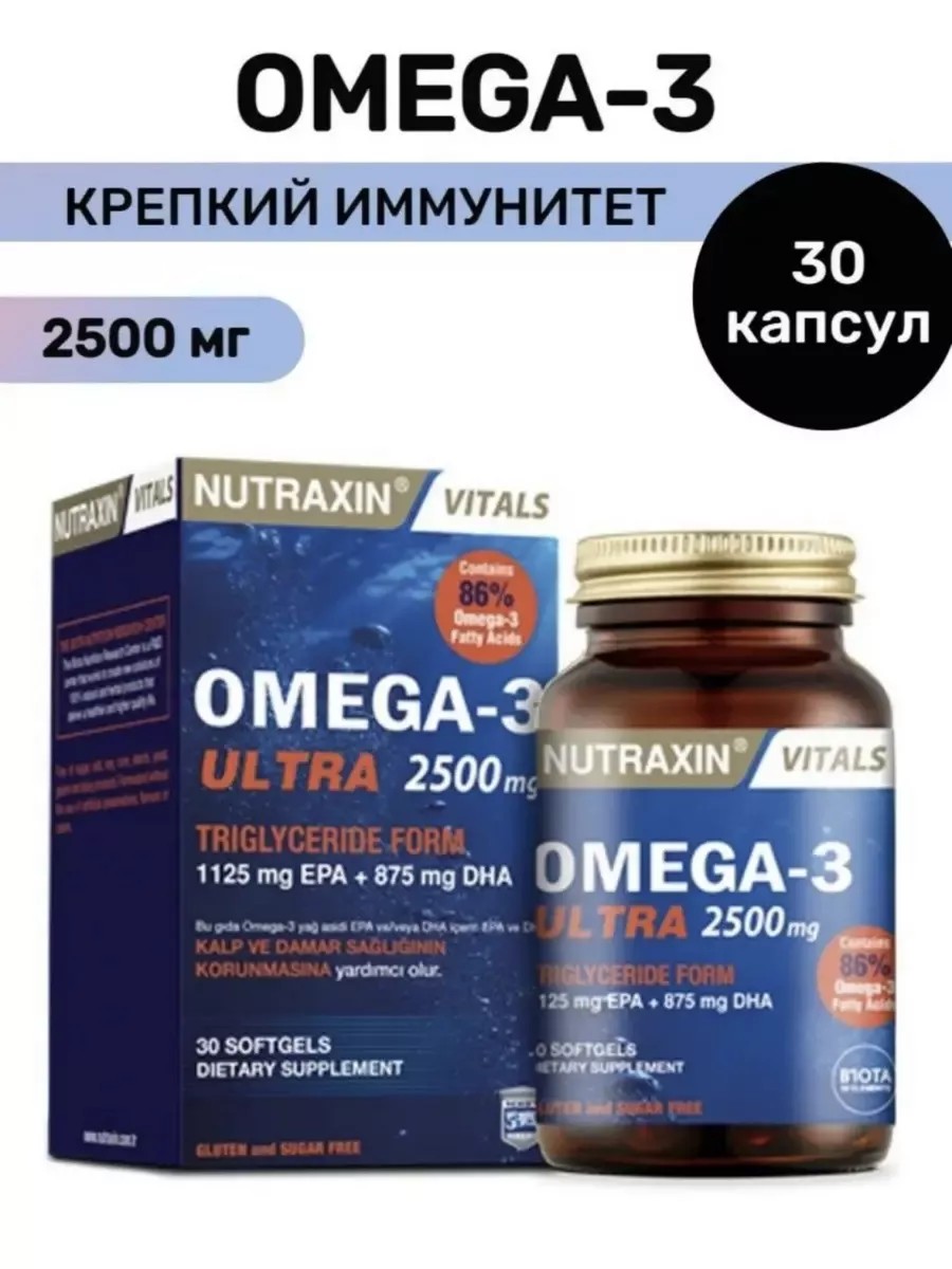 NUTRAXIN Витамины и бады Омега 3 капсулы, рыбий жир отеда 3 2500 мг