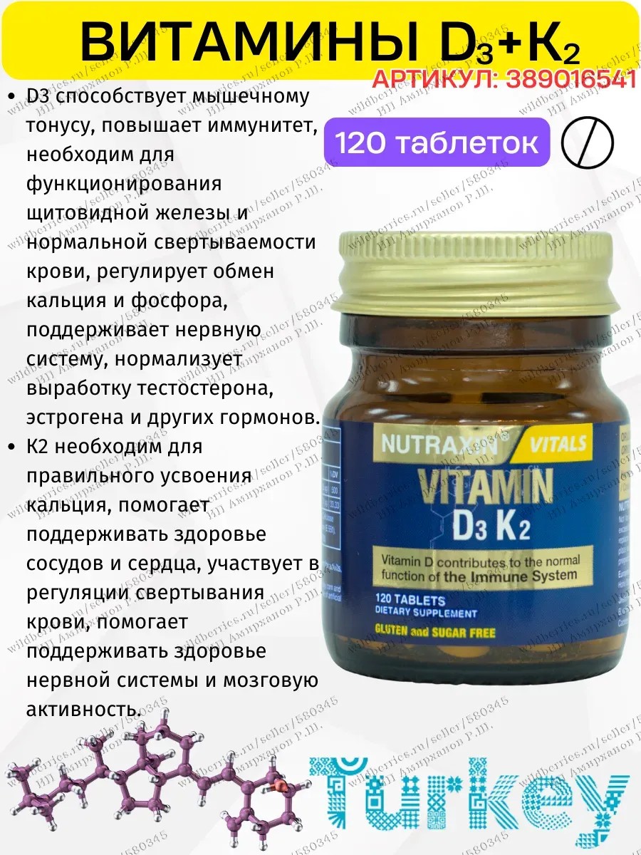 NUTRAXIN Витамины D3 1000 K2 таблетки Турция