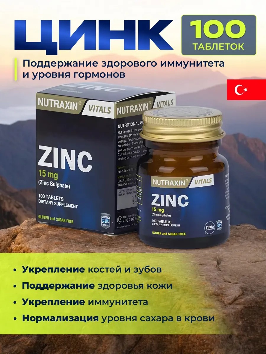 Nutraxin Zinc Цинк (сульфат) 15 мг является высокоэффективной добавкой, содержащей 15 мг в каждой таблетке.