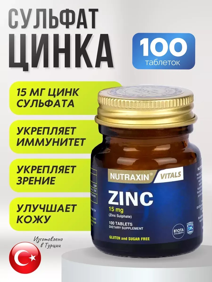 Витамины цинк сульфат от турецкого бренда Nutraxin — это высококачественная пищевая добавка, содержащая органический цинк. Цинк является важным минералом, который участвует в работе более 300 ферментов, поддерживая обмен веществ, иммунную систему, рост клеток и здоровье кожи, волос и ногтей. Органическая форма сульфата обеспечивает отличную усваиваемость и биодоступность.