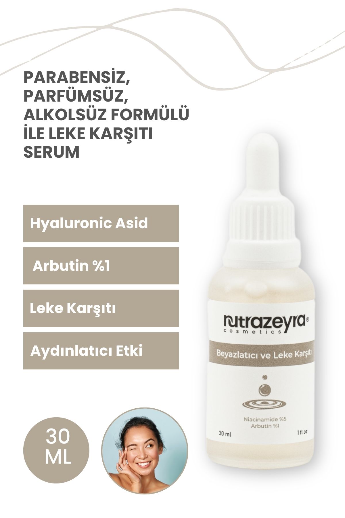 Nutrazeyra Beyazlatici ve Leke Karsiti Cilt TonuEsitleyici ve Aydinlatici Arbutin Cilt Serumu 30 ml