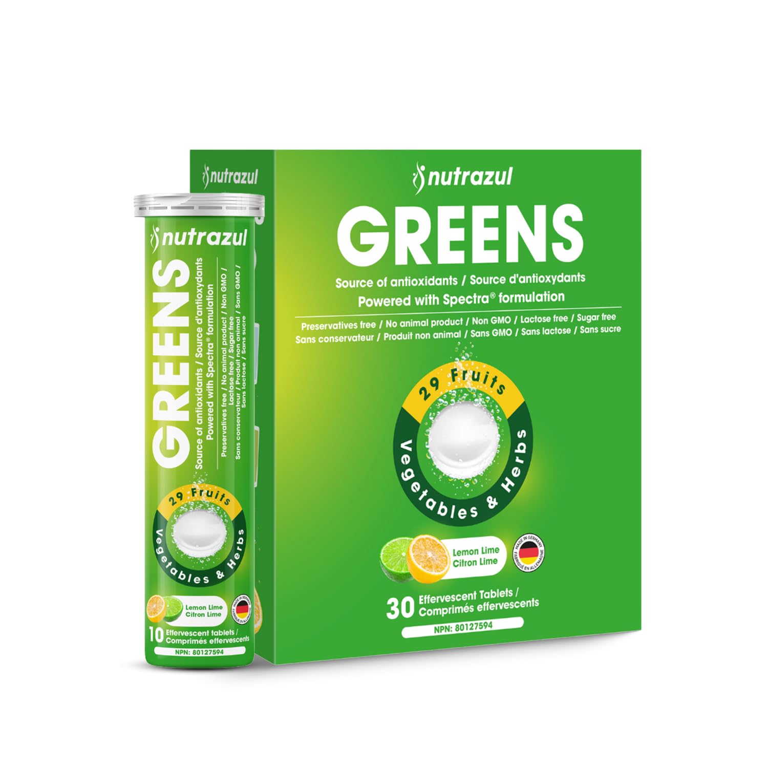 nutrazul Greens Effervescent Tablets - Daily Super Greens Supplement with 29 Superfoods - Antioxidant & Immune Support - Lemon Lime Flavor - Non-GMO - 30 Tablets