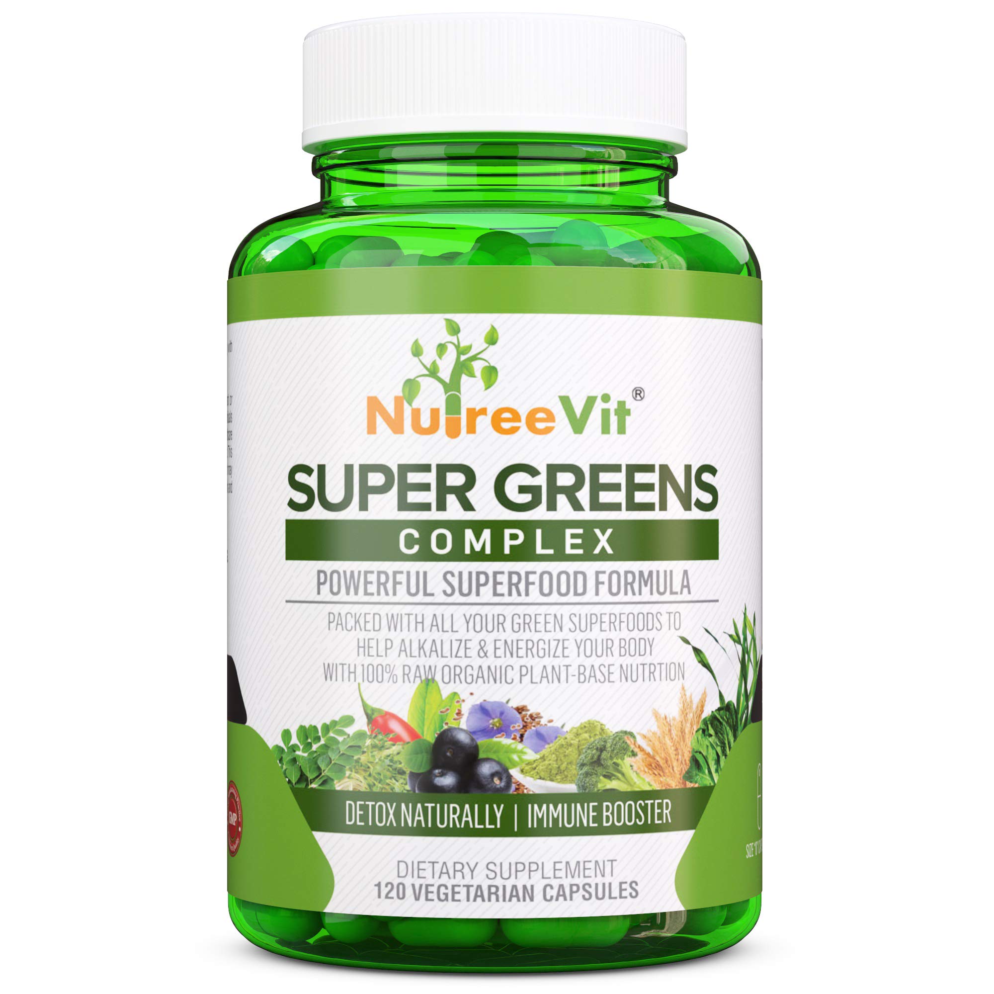 NutreeVit SuperGreens - Spirulina Chlorella Wheatgrass + More - Nutrient-Packed Green Blend 60 Count (Pack of 1)